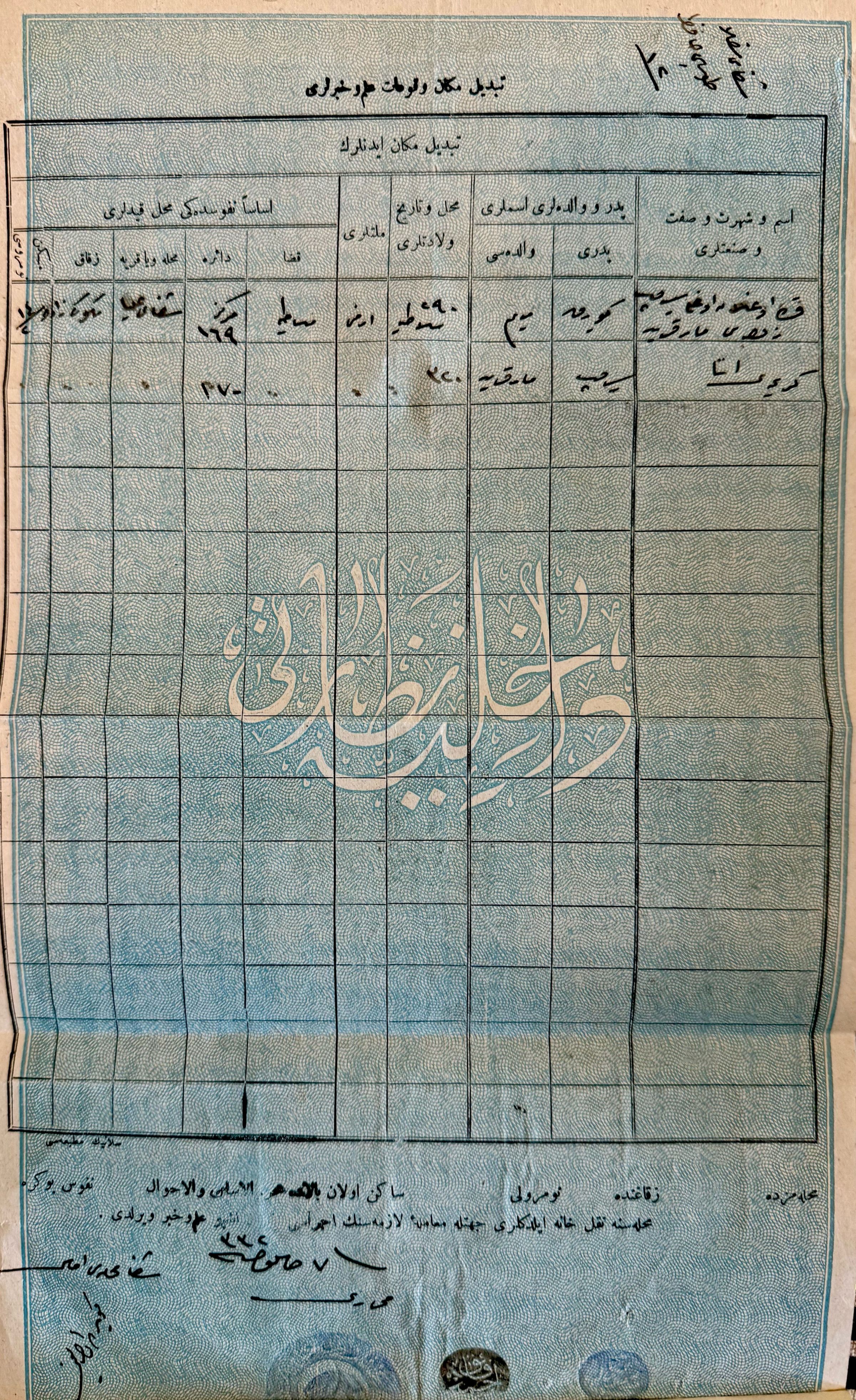 This document reflects one of countless cases during the Armenian Genocide (1915–1916) in which Armenian women and children were forcibly converted to Islam as a means of survival. Under the guise of assimilation, the Ottoman state and local actors subjected Armenians to systemic deportations, mass violence, and the destruction of communal structures. Those who converted—whether voluntarily, semi-voluntarily, or under threat—were sometimes absorbed into Muslim households, orphanages, or institutions. Obtaining a Tezkire-i Osmaniye was not only a legal necessity but also a symbolic and practical validation of their new, state-approved identity.