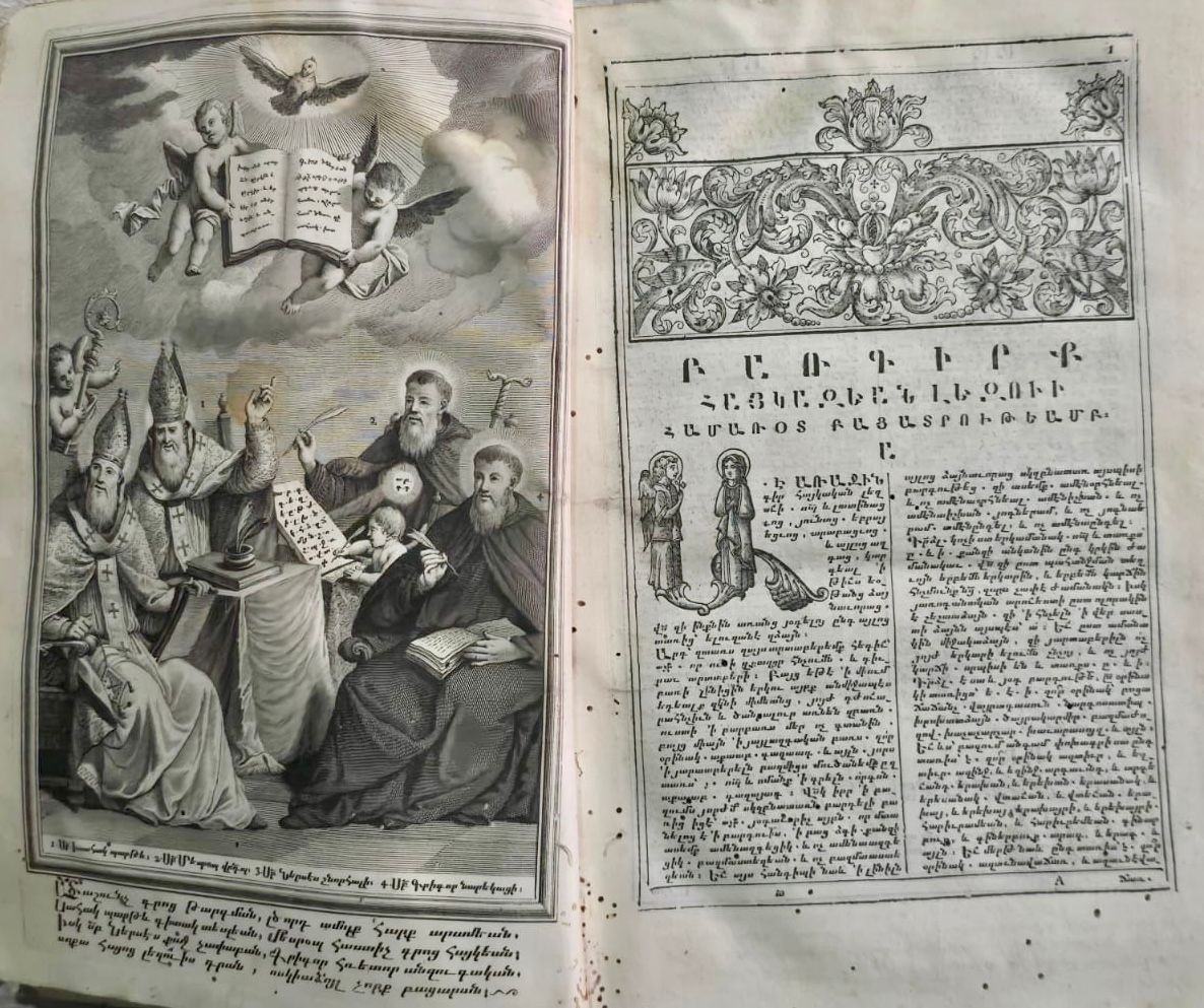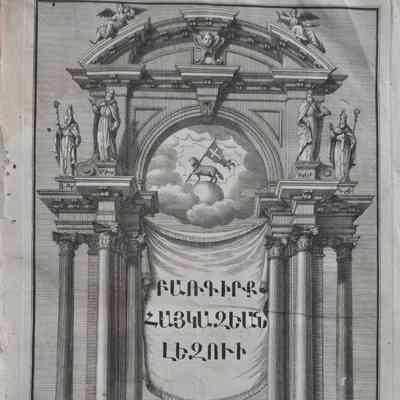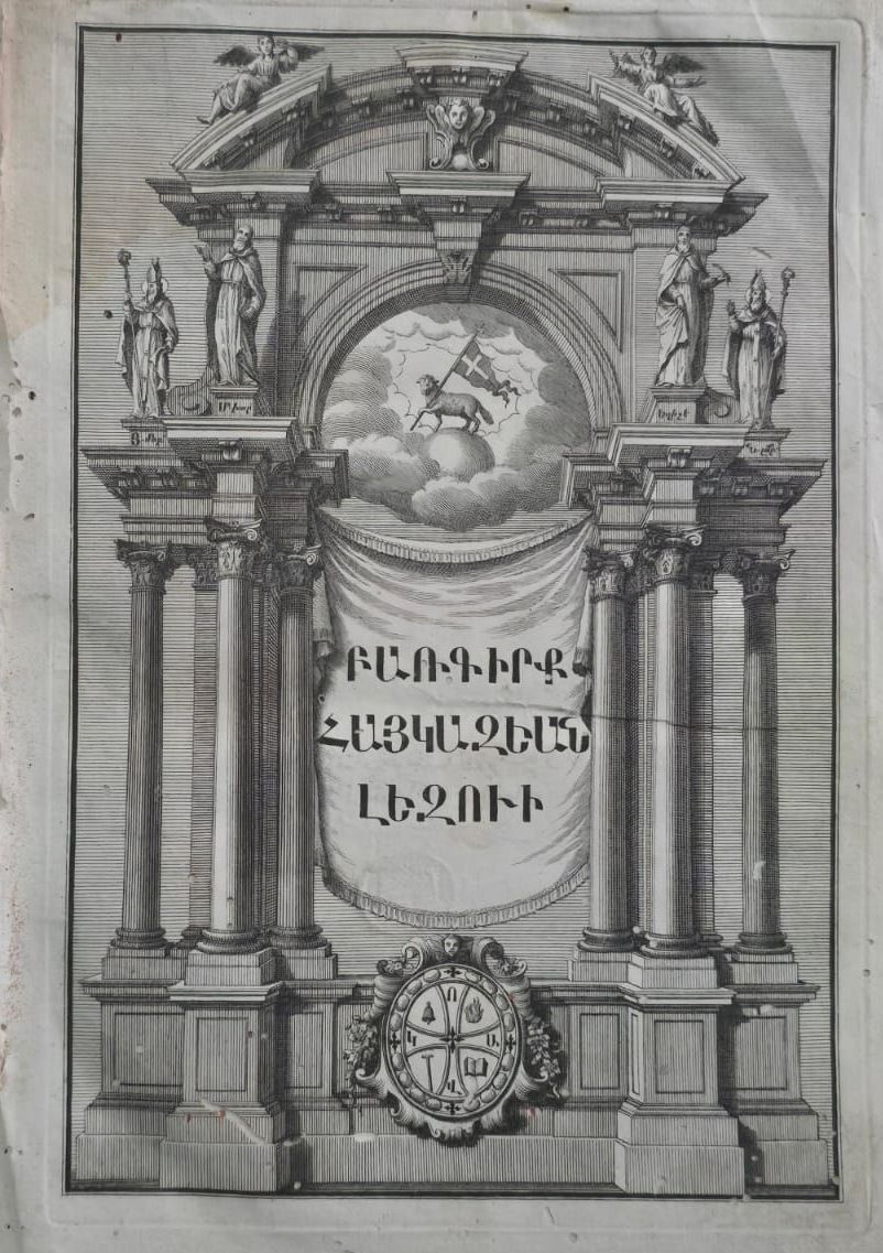 The Haikazian Dictionary was not only a lexicographical monument but also a collaborative artistic enterprise. The first volume was fully prepared for printing by 1749, lacking only its frontispiece engravings and preface. Two copperplate engravings—executed by an Italian artist—adorned it: one bearing the title “ԲԱՌԳԻՐՔ ՀԱՅԿԱԶԵԱՆ ԼԵԶՈՒԻ” (“Dictionary of the Haikazian Language”) and the Mekhitarist seal, and another depicting Saint Sahak, Saint Mesrop, Saint Nerses Shnorhali, and Saint Gregory of Narek. These engravings cost 264 lire, a substantial amount at the time.