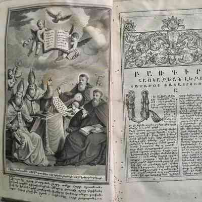 Work on the dictionary began in 1727, as Mekhitar himself recorded: “Beginning in the year of the Lord 1727, I reached the letter Ե (Ye) and the word Yerakhayr (Nurse)… until the year 1742, when I resumed the work with our students, completing it in 1745.” The first external reference appears in a 1728 letter to Father Yeghia in Constantinople: “Now I have begun the dictionary, and it will scarcely be finished even in a hundred sheets.” His progress was interrupted by other major projects, including his Grammar of Classical Armenian (1730) and his comparative study of the Bible in seven languages—Latin, Greek, Syriac, Chaldean, Arabic, Samaritan, and Armenian—which profoundly informed the dictionary’s linguistic and theological precision.