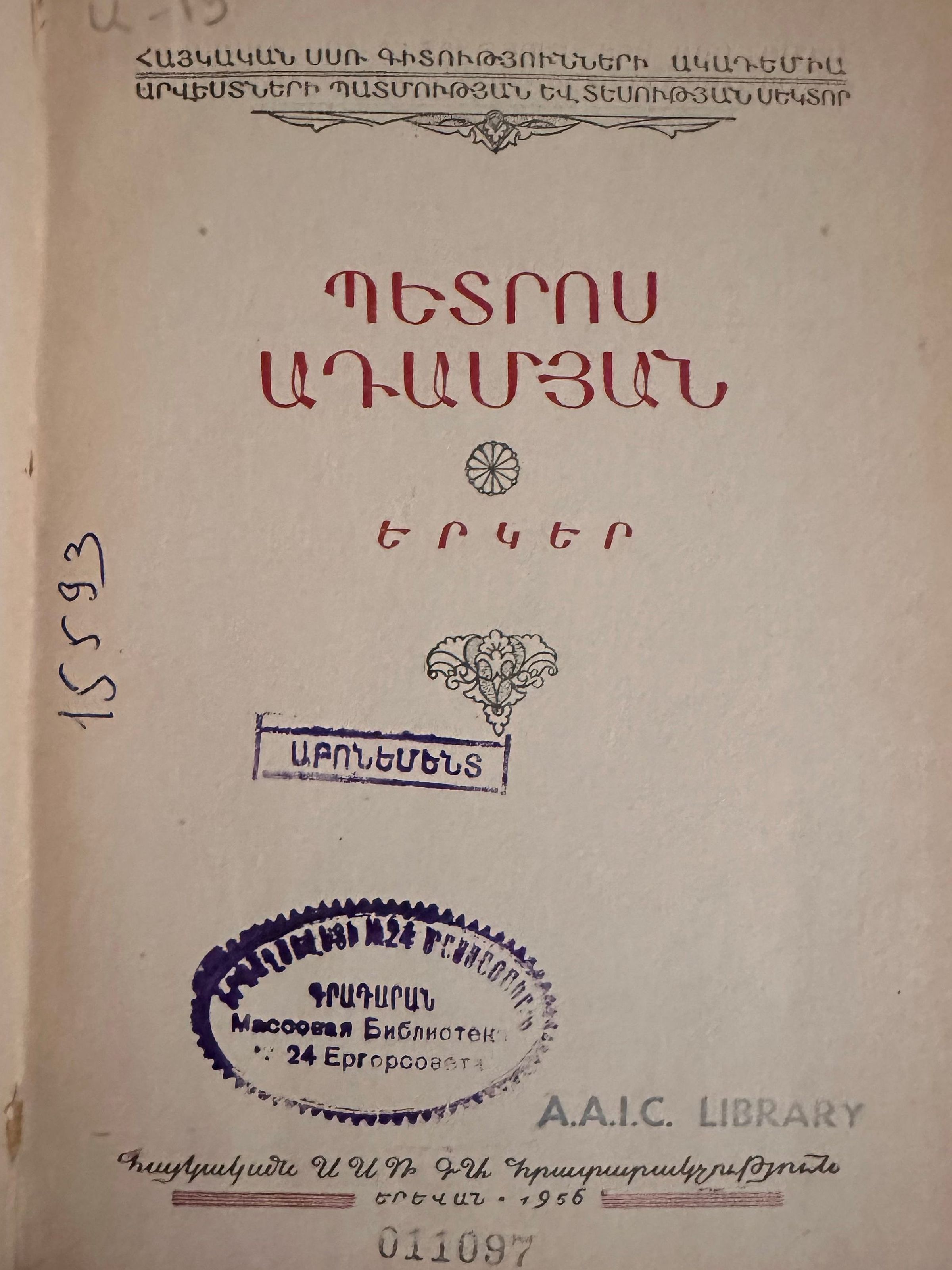 Պետրոս Ադամյան Երկեր. Petros Atamyan Works.Description