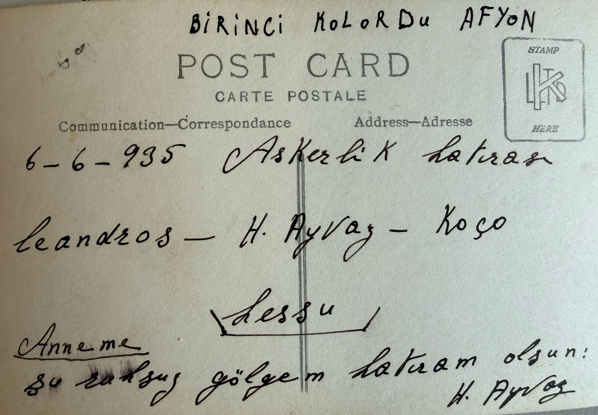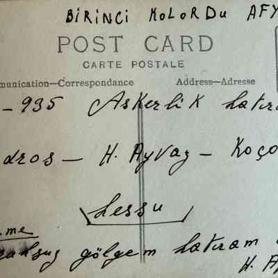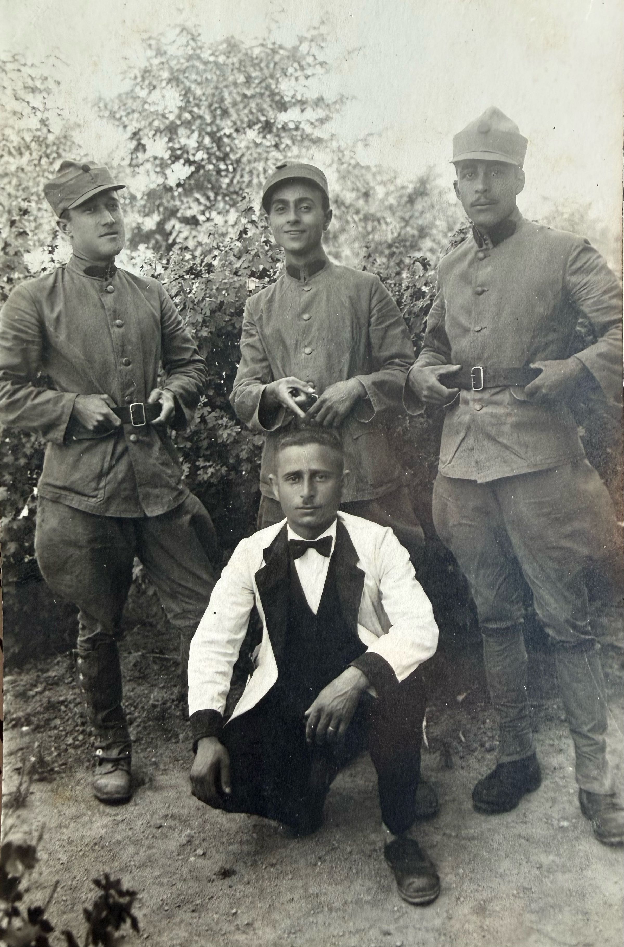 Photograph of Hagop Ayvaz during his military service (backrow middle) in Afyonkarahisar. The photograph was sent to his mother.