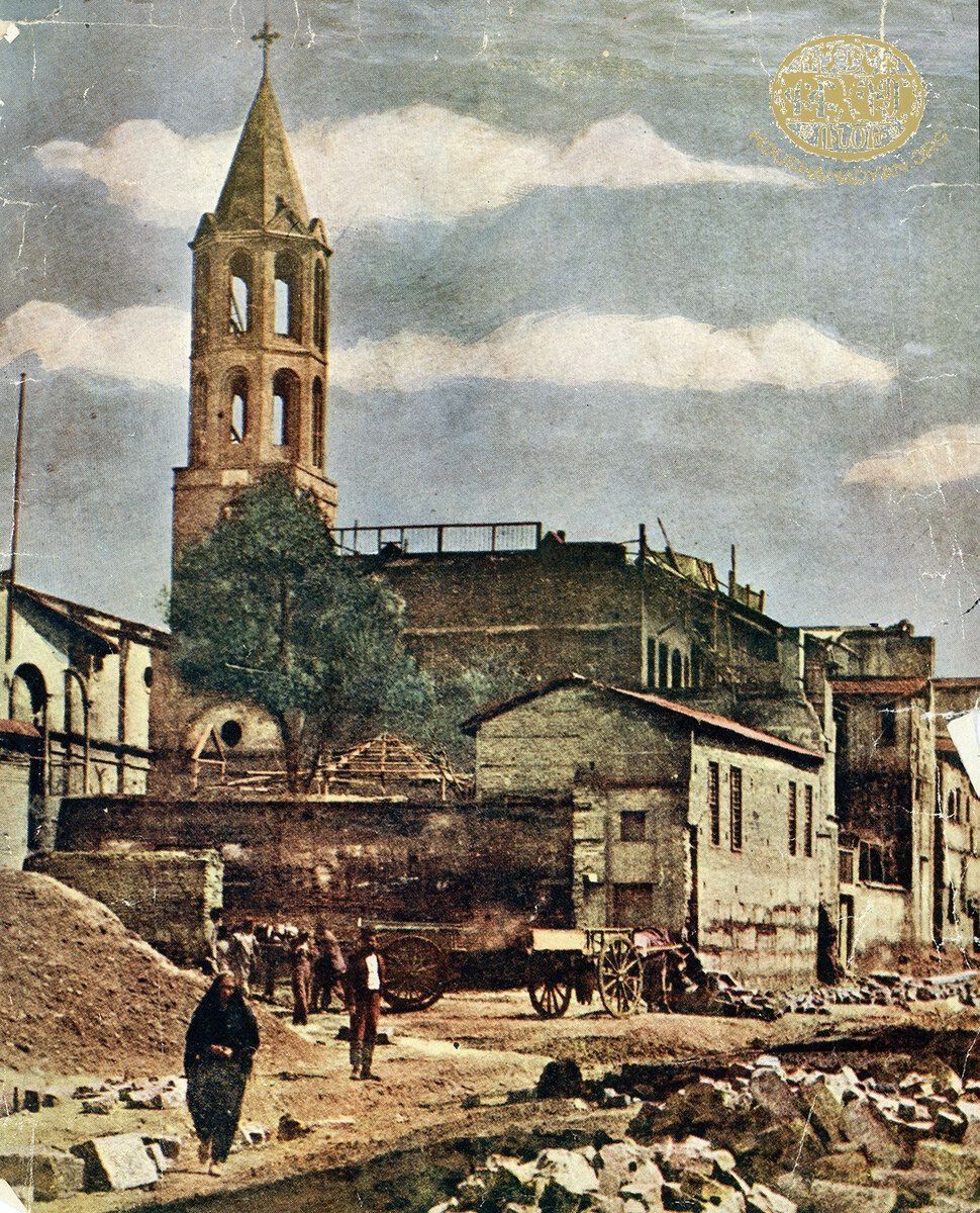 The property appears to have been part of a large family residence occupied by multiple branches of the Aşıkyan (Ashekian) family. According to the family history preserved by Garabed Ashekian (son of Parseğ) and recorded on Houshamadyan, the household was located at the edge of Kazandjilar Street in Adana, directly adjacent to the Holy Mother of God Armenian Church and its high bell tower to the north; the Armenian diocesan compound and courtyard lay to the west; and the wide thoroughfare Divan Yolu lay to the south. The church, built with support from Governor Bahri Pasha and Archbishop Mushegh Seropian, stood as a major landmark in the Armenian quarter, situating the Ashekian residence within a religious-communal core of the city’s Armenian neighborhood. This proximity underscores the close relationship between domestic life and institutional Armenian presence in late Ottoman Adana. All members of the household, including extended family—parents, siblings, children, grandparents, and in-laws—lived in different sections under one roof, reflecting extended patriarchal household structures typical of urban Armenian families at the turn of the twentieth century. Multiple family lines co-resided: Parseğ, Dikran, and Mihran lived together with their wives, children, and elders including their grandmother Hripsime (née Murad Tekeyan) and grandfather Garabed Parsegh Ashekian. There were numerous children in the compound, and the household operated as an integrated family unit until the upheavals of the 1909 Adana Massacres. Photographic evidence from circa 1900 shows the Ashekian house immediately south of the church and bell tower, confirming the family’s spatial presence in that core urban block. The large compound included space for both domestic and commercial activity, with nearby family investments in mills, factories, and warehouses.