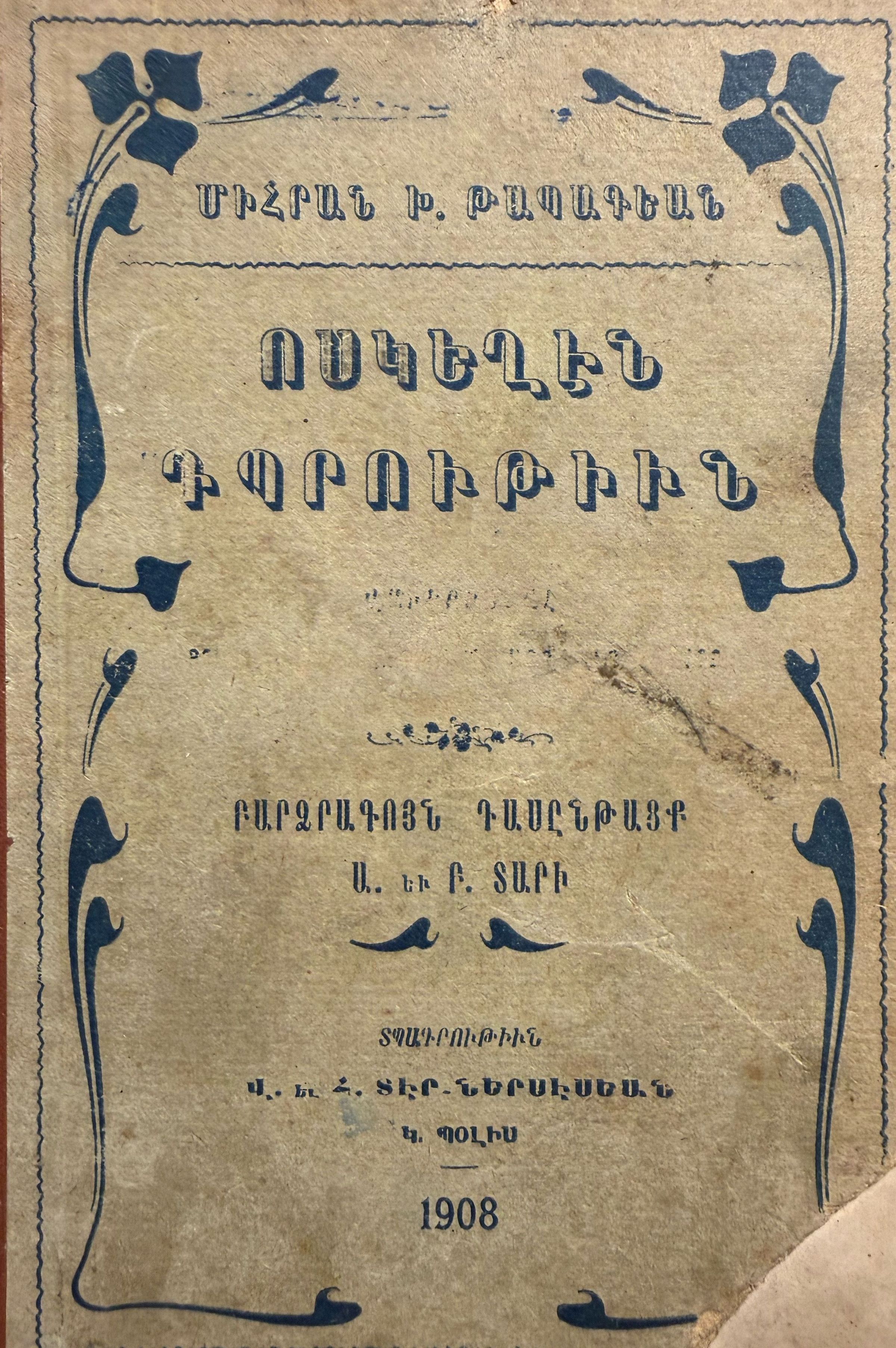Vosgeghen Tbrutiun (Mihran Tabakian, 1908)Secondary Title