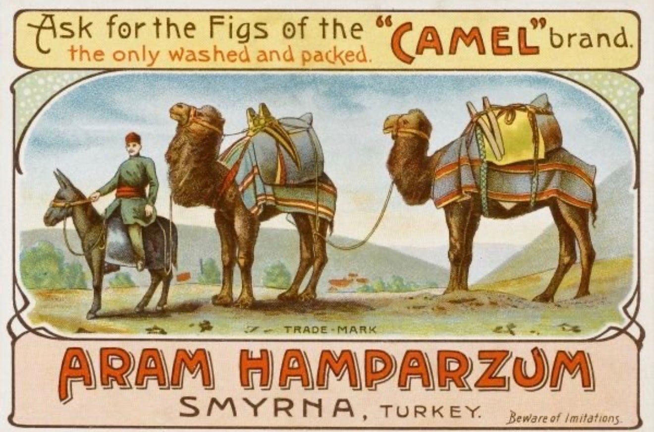 Hampartzum Han was a prominent nineteenth-century commercial structure and warehouse located in Izmir, Turkey, originally situated near the Yemiş Bazaar, the center of the region's historic fig trade. The building was known by several names throughout its existence, reflecting the cosmopolitan nature of Izmir’s merchant class. It was initially owned by the Guiffrays, a prominent Levantine family, and was frequently referred to as the Guiffray Han or the Ottoman Bank Depots. However, it became most commonly associated with Aram Hampartzum, a major Armenian merchant who utilized the large two-story building as a primary warehouse for his firm, Camel Brand. Known as the "Fig King" of the world markets, Hampartzum was instrumental in the global branding of the Smyrna fig, a specific variety (Sarı Lop) renowned for its succulent sweetness, thin skin, and nutty flavor. He managed his global firm, utilizing the iconic Camel Brand for local logistics and the prestigious Löwen-Marke (Lion Brand) to market Smyrna figs as a luxury commodity in Germany and throughout the Western world.