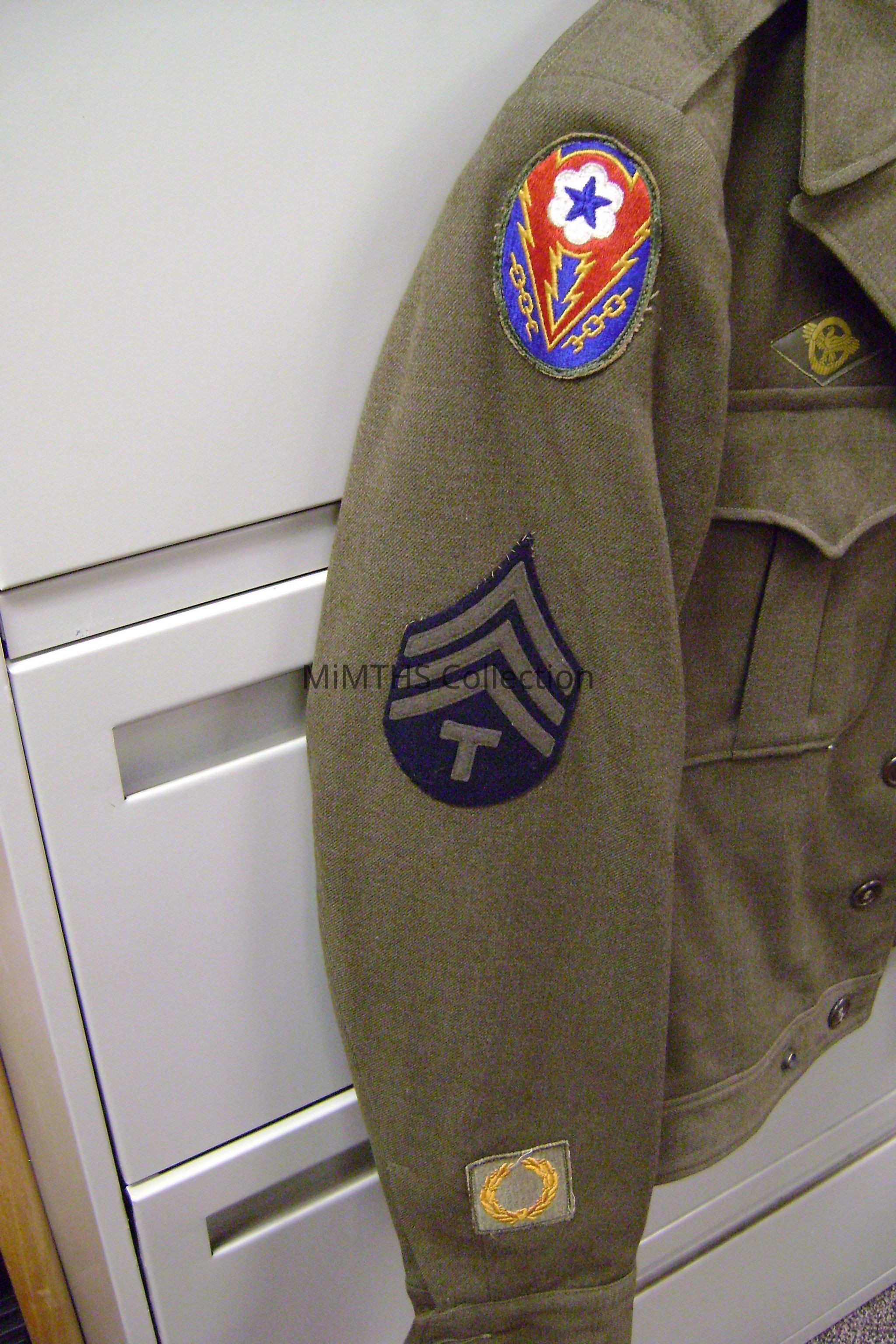 L Sleeve 6th Service Command, 2 Overseas Stripes, 1 Service Stripe (3 yrs Service 1 Overseas)