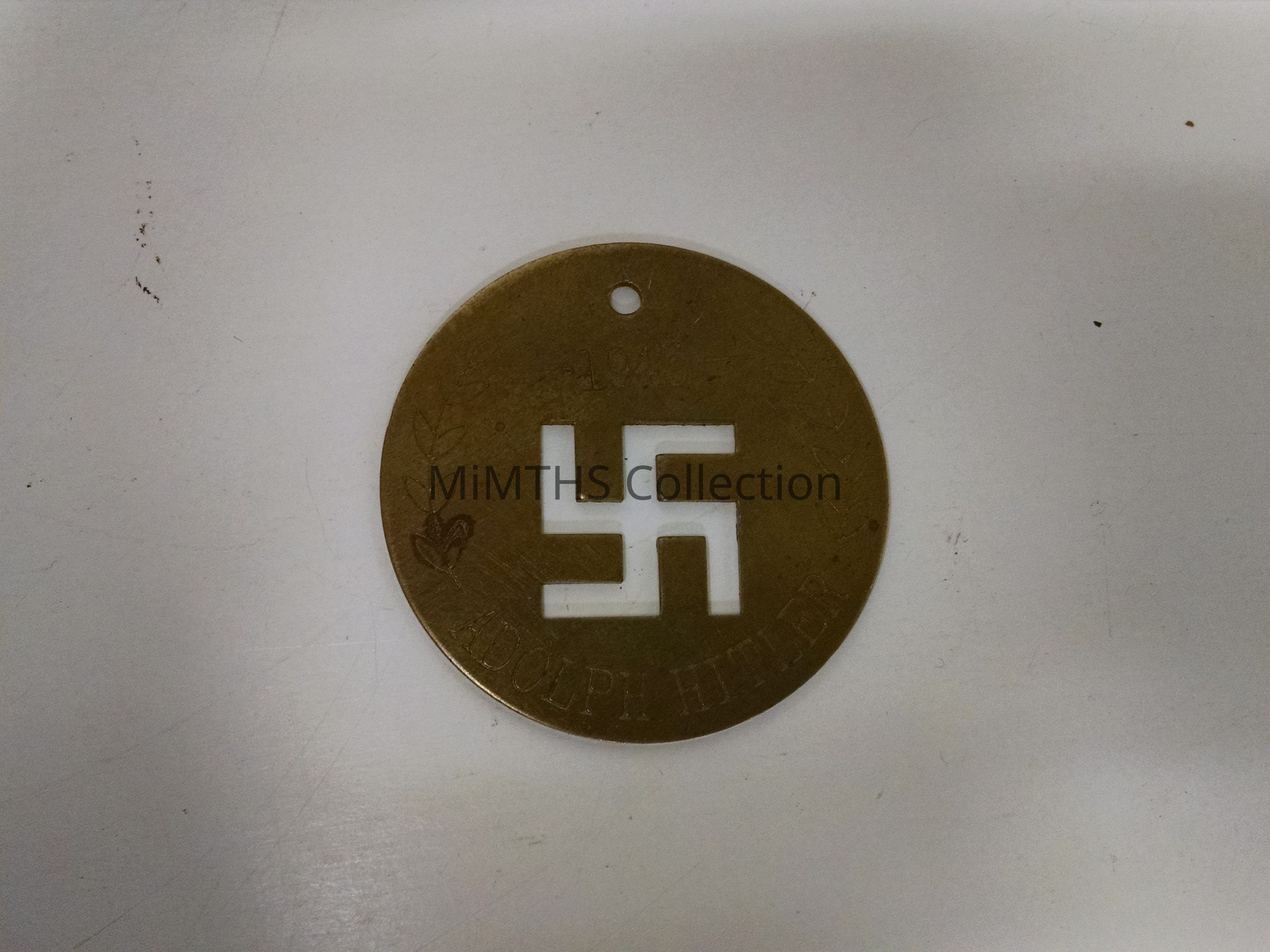 These simple brass disks show up frequently at collectors shows. Normally considered worthless, they are interesting for the simple fact that they are some of the the first in a long line of fake Nazi collectors items made for mass market for theAmerican GICataloged By