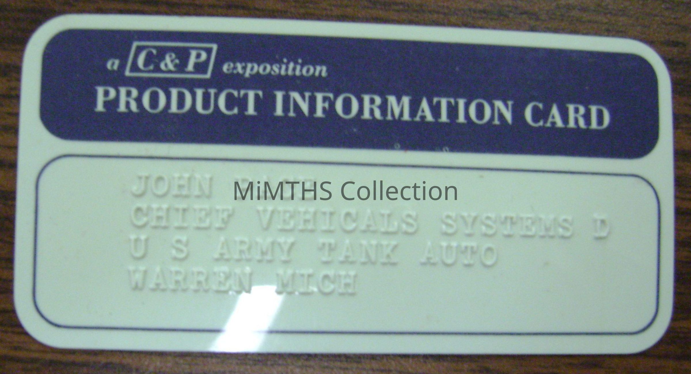C&P product information Card from John H Pace, supervisory engineer, US Tank Automotive Command AMSTA-RSCataloged By