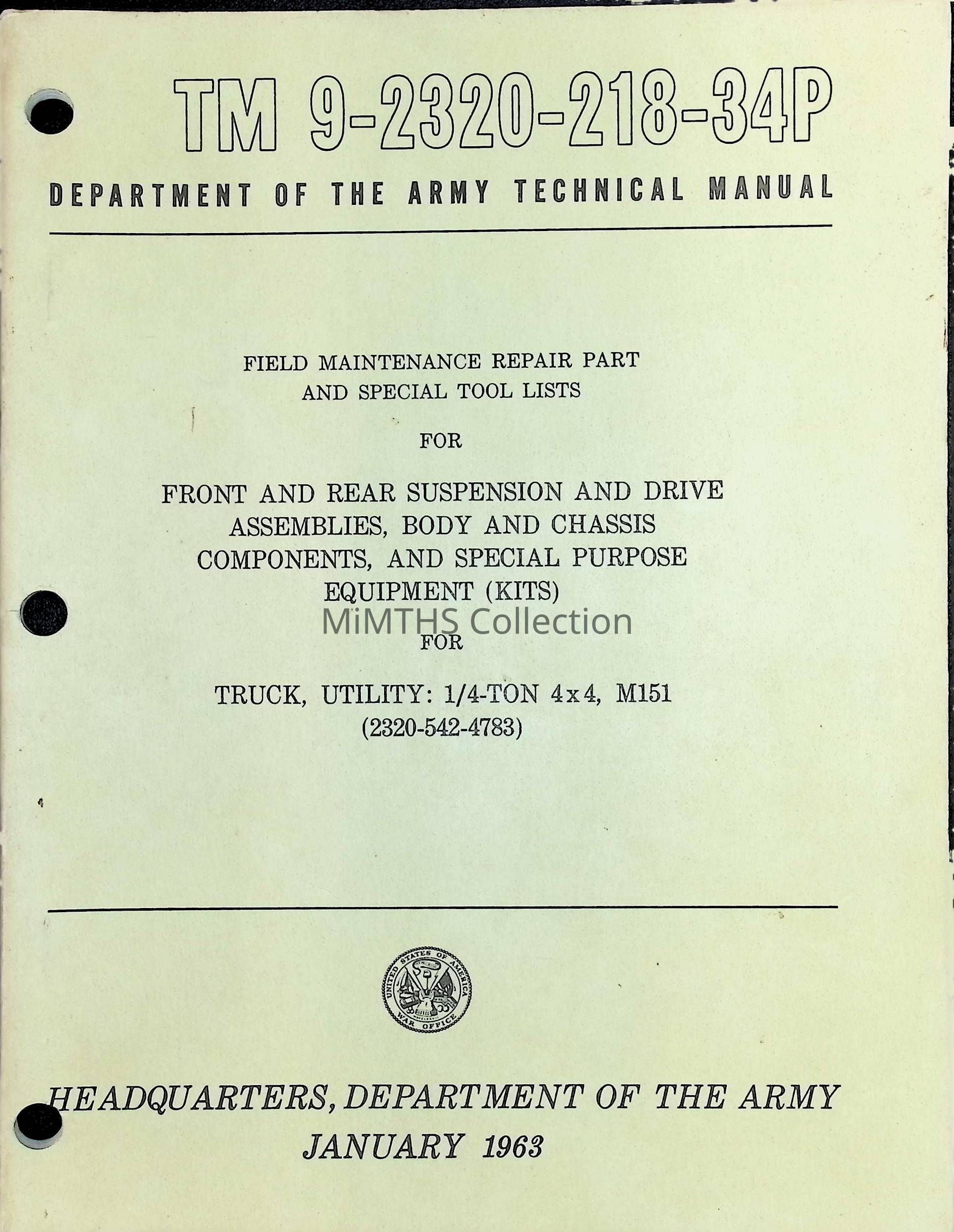 Field Maintenance Repair Part and Special Tool Lists for Front and Rear Suspension and Drive Assemblies, Body and Chassis Components, and Special Purpose Equipment (Kits) for