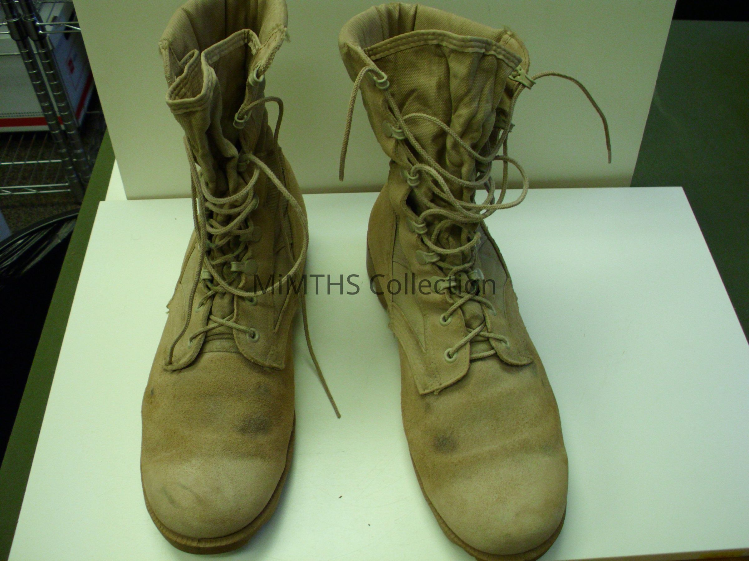 1 Pair US Desert boots in 11W, as worn by Chris Causley in Kuwait 2004.