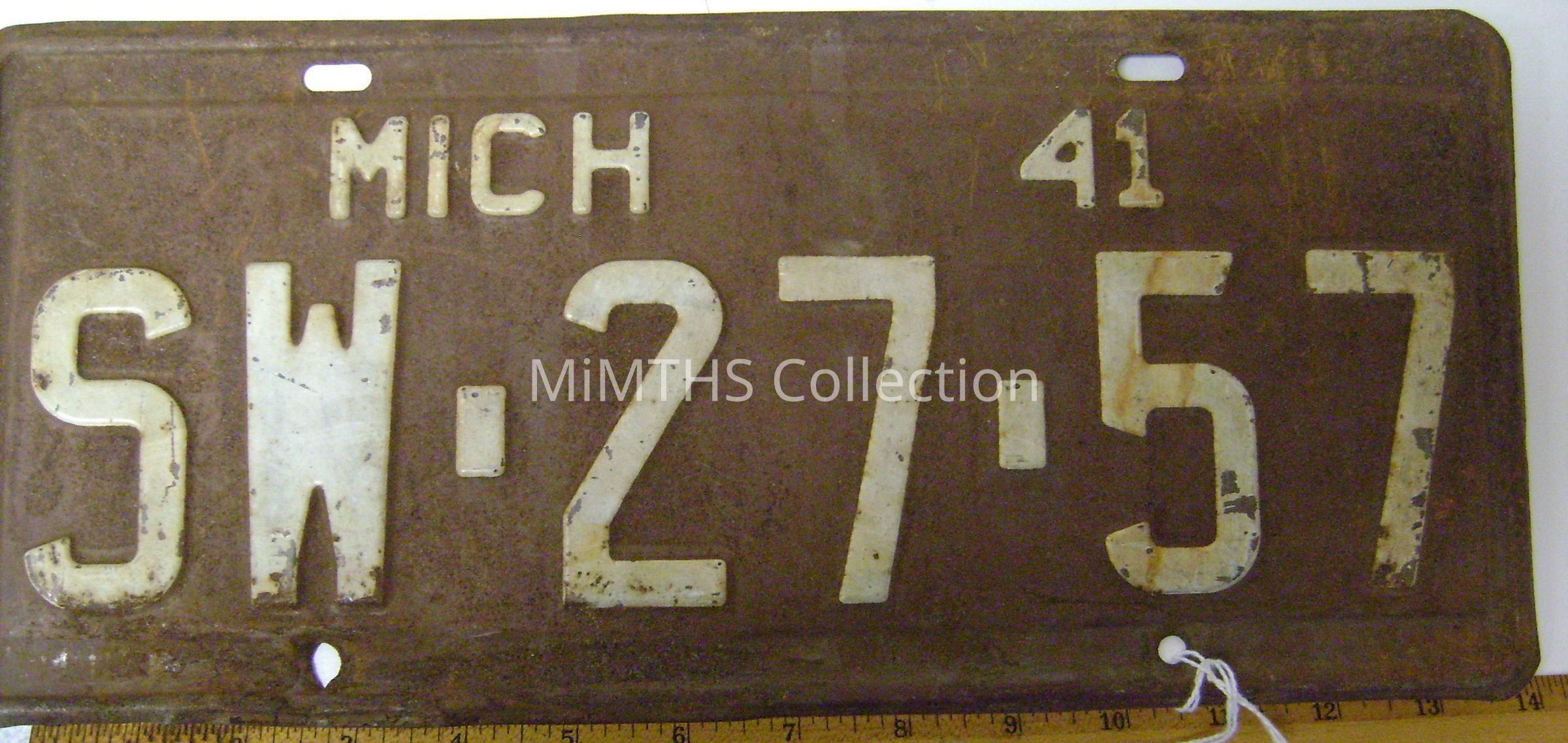 1941 Michigan Car License PlateEntry/Object ID