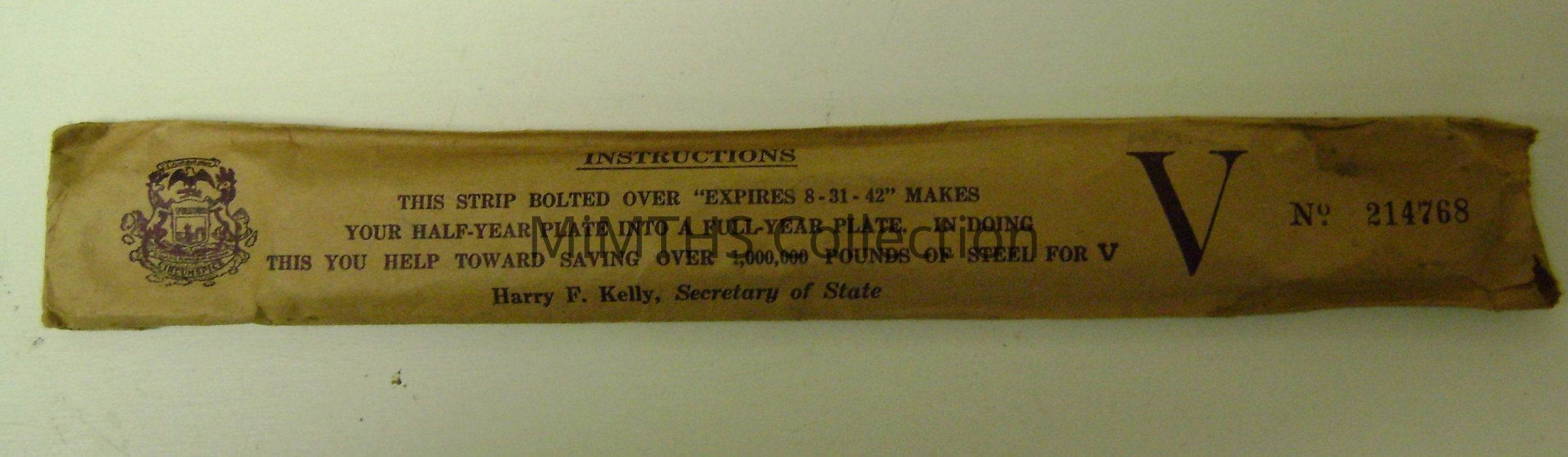 1942 Michigan Car License Plate TabsEntry/Object ID