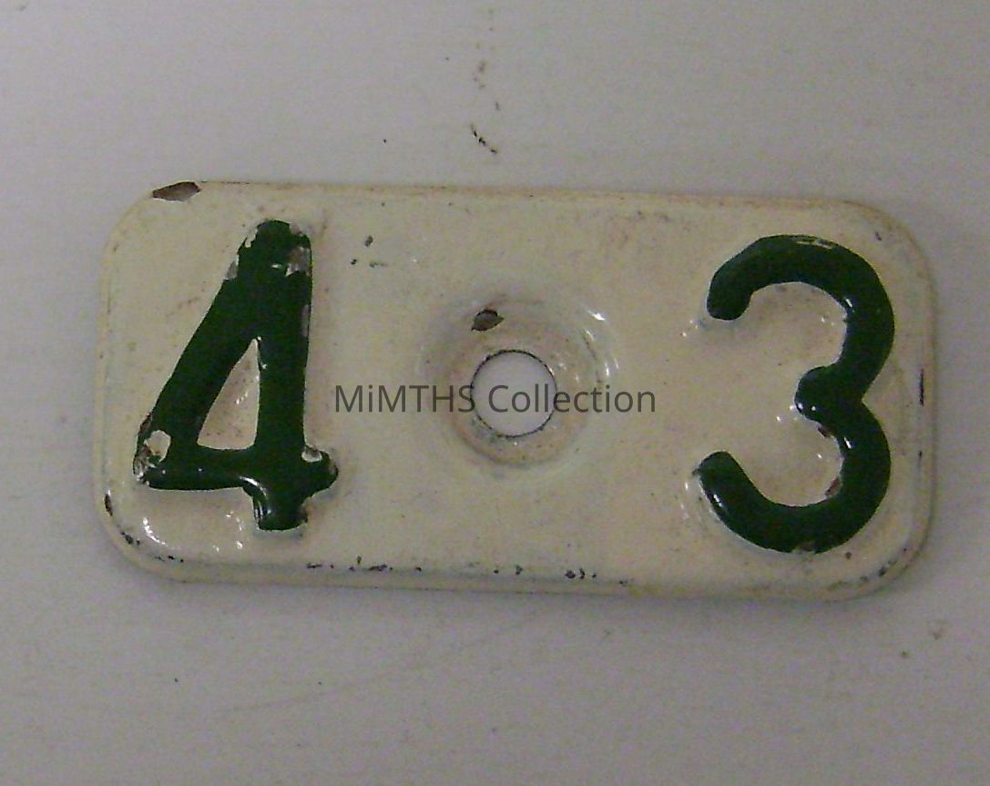 1943 Michigan Car License Plate TabEntry/Object ID