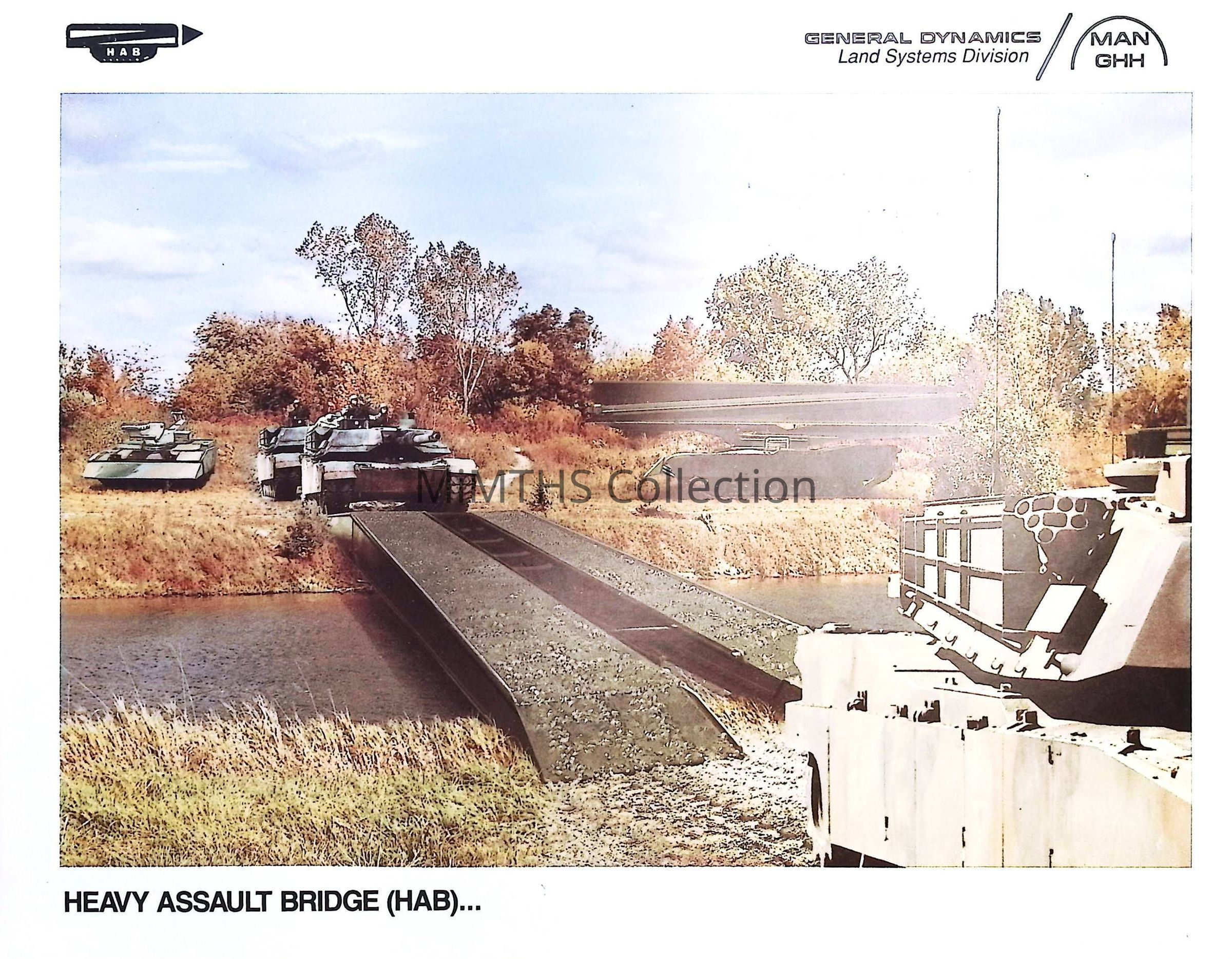 Heavy Assault Bridge (HAB), General Dynamics Land Systems Division, MAN GHH, informational sheet showing technical characteristics and significant featuresCataloged By