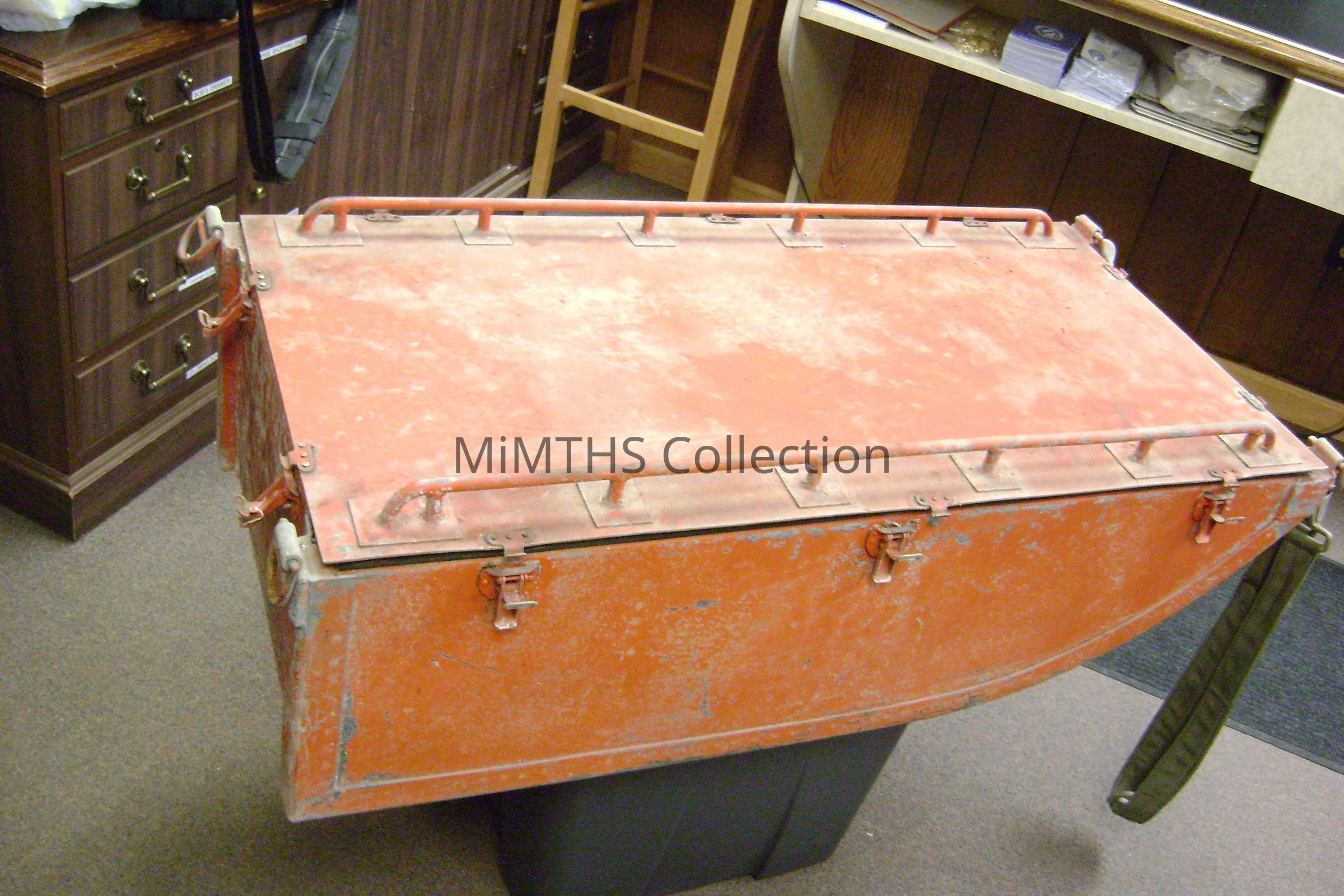 US Air Force Aerial Delivery Sled Emergency Survival Kit. Dated 1956. Type A-16. Made by National Light Metals & Plastic Corp Caro, Mich.