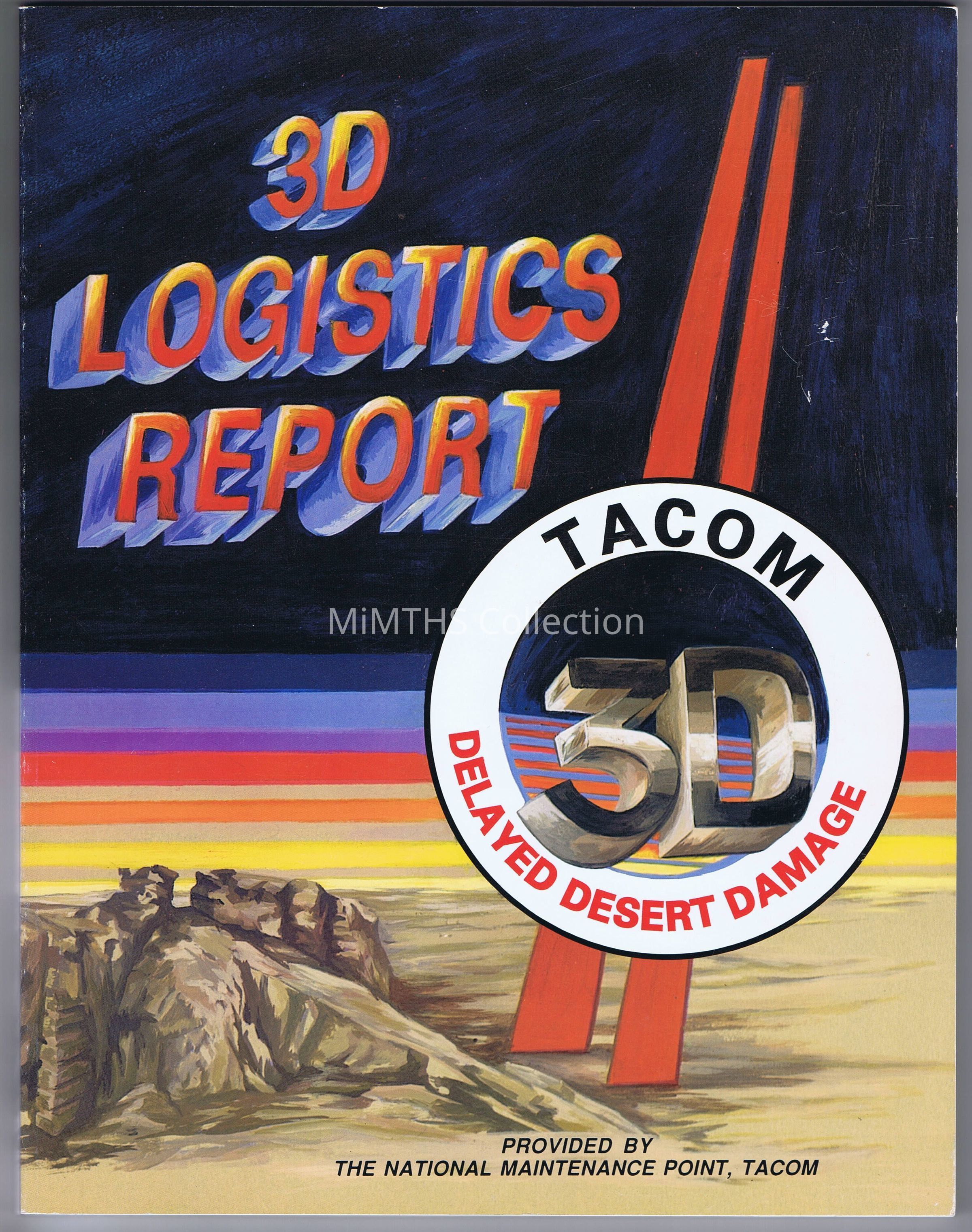 3D Logistics Report - TACOM - Delayed Desert Damage - provided by national maintenance point, TACOM. U.S. Army Tank Automotive Command. A compilation of findings of damage to vehicle components and subsystems to both tracked and wheeled vehicles during the Gulf War due to desert warfare conditions not previously encountered at such scale. These findings are used to provide context and data for proposed additional maintenance procedures and potential design changes or supplementary changes to materials/equipment for components and systems.Cataloged By