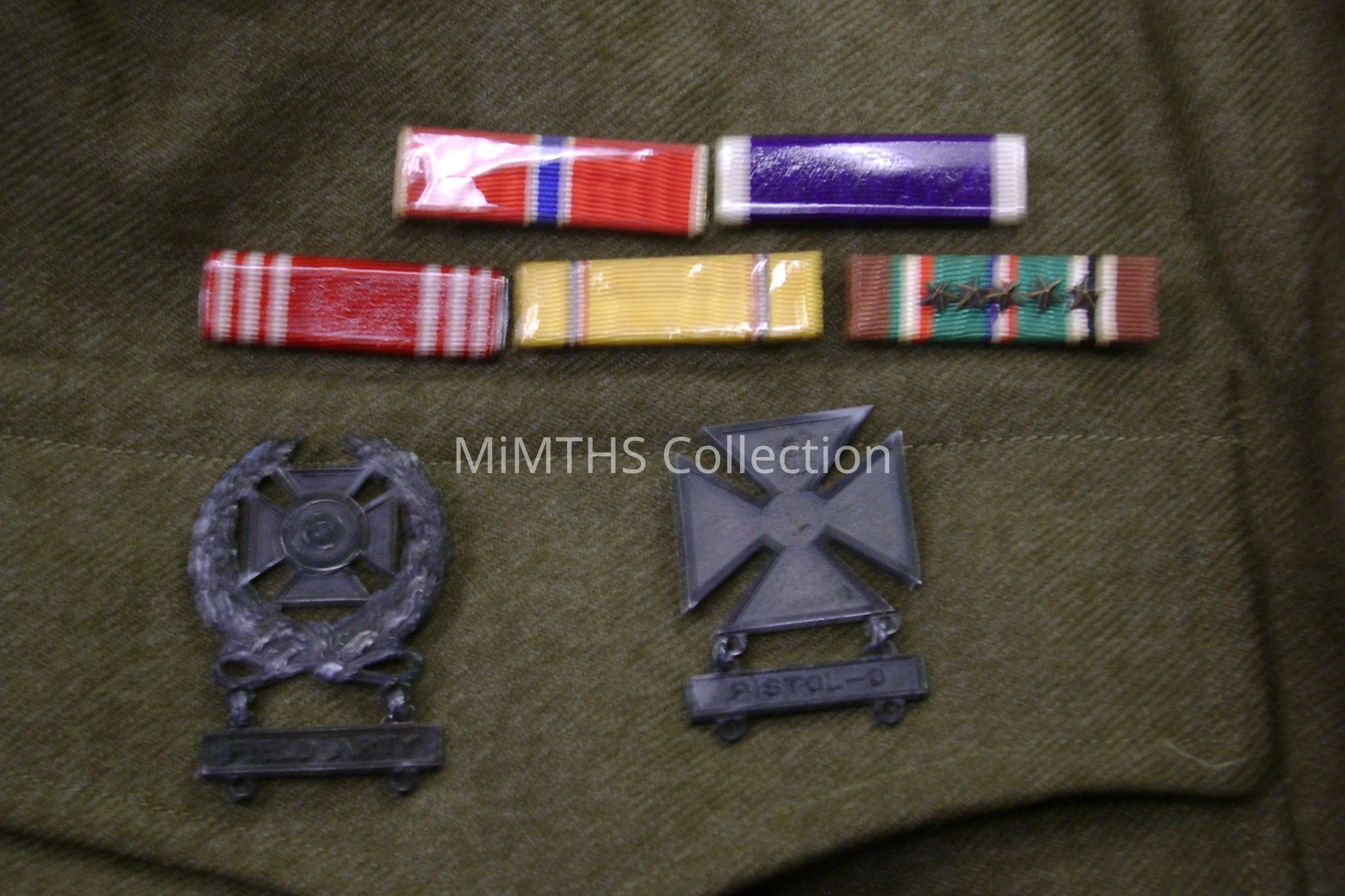 Ribbon bars: Purple Heart, Bronze Star, Good Conduct, American Defense Service, and Eur. African-Mid Eastern Campaign (5 bronze service stars)