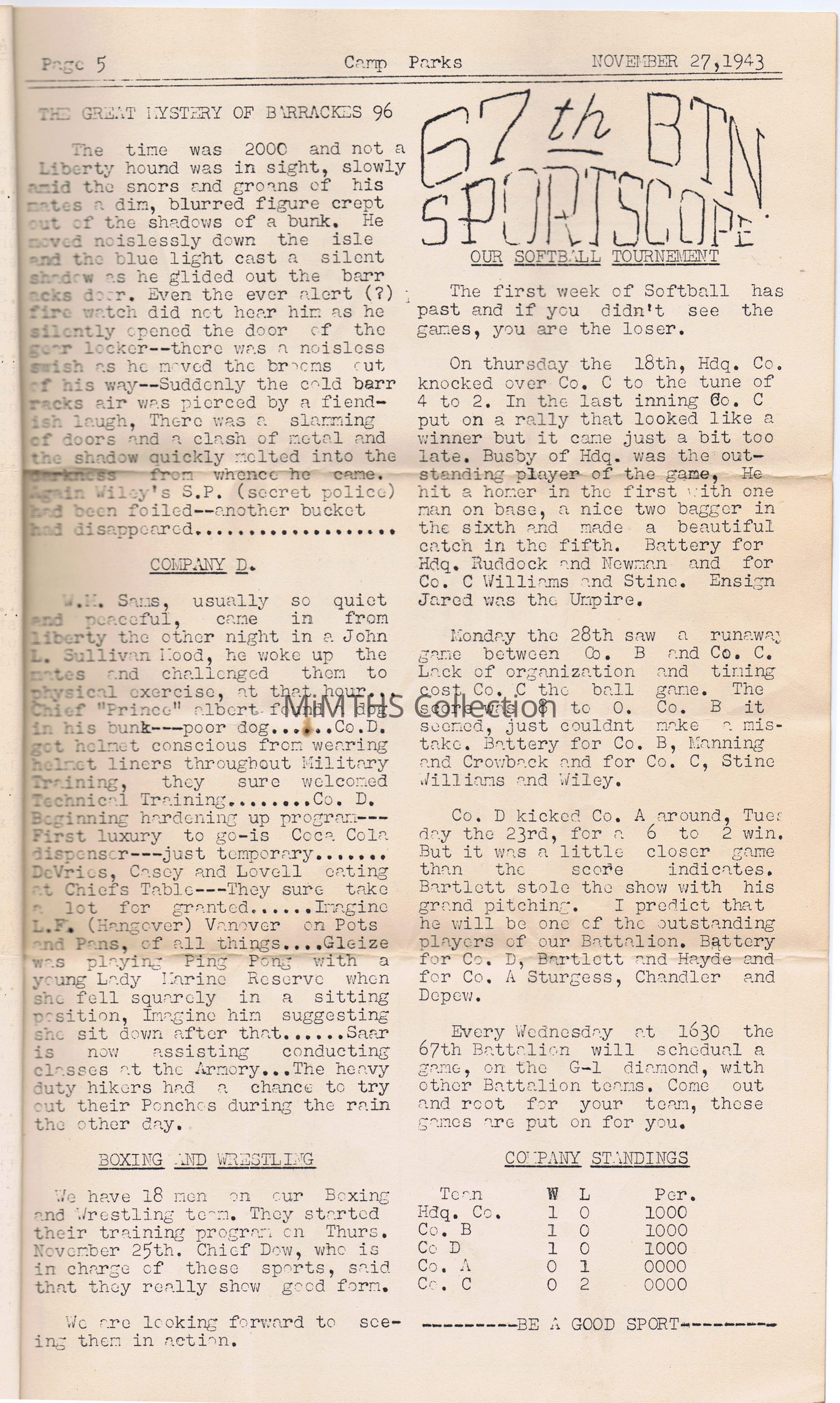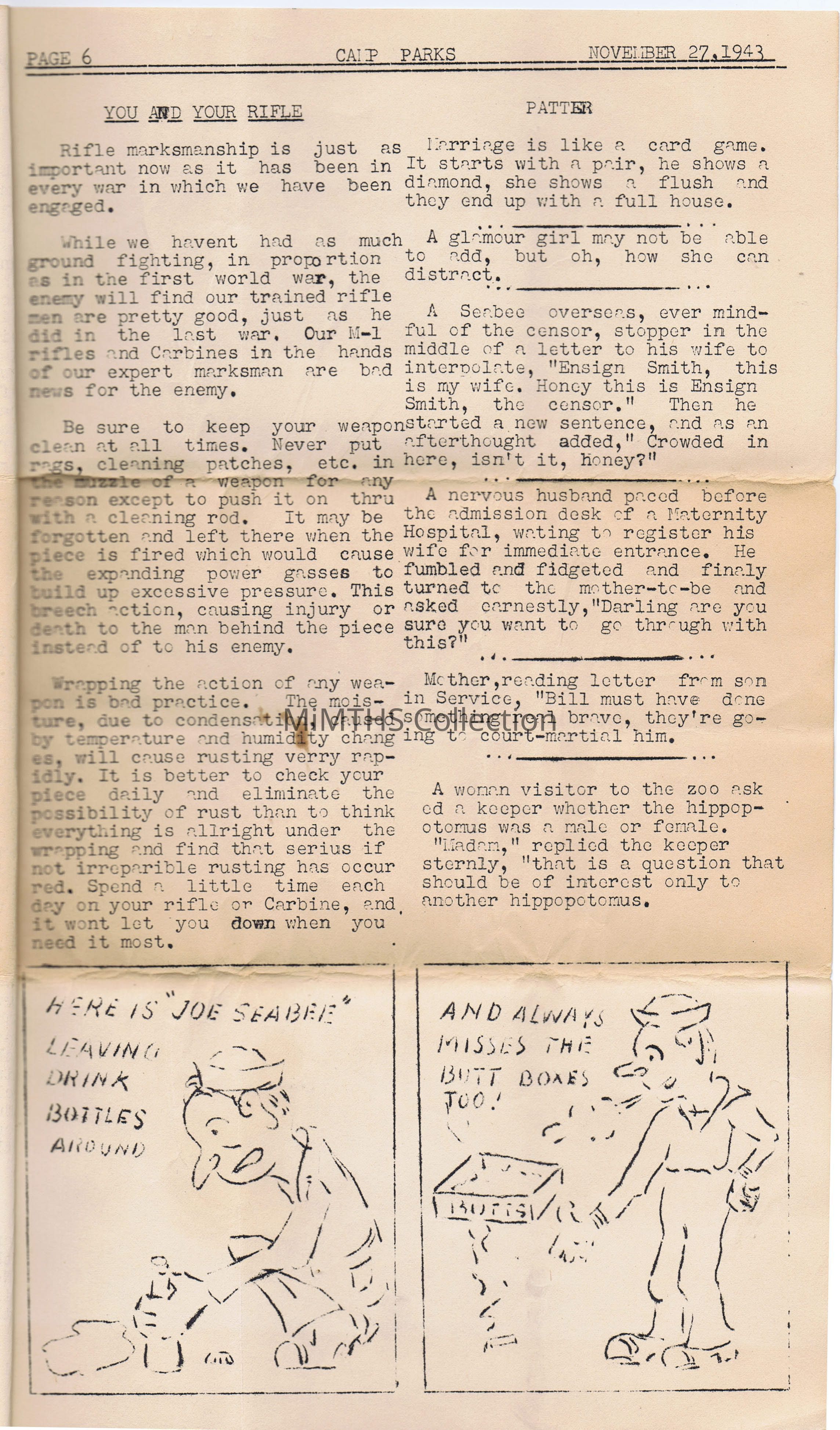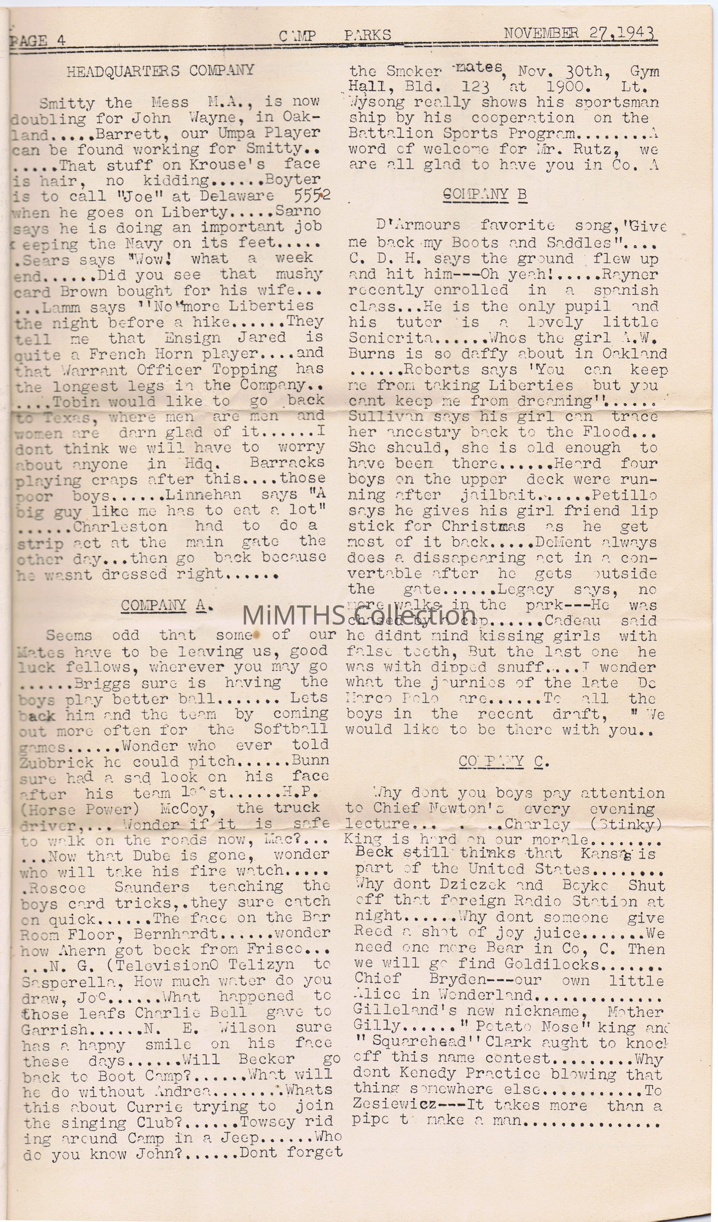 This is a newsletter for the 67th Naval Construction Battalion (Volume II Issue IV) that was issued on November 27, 1943 Thanksgiving Week.