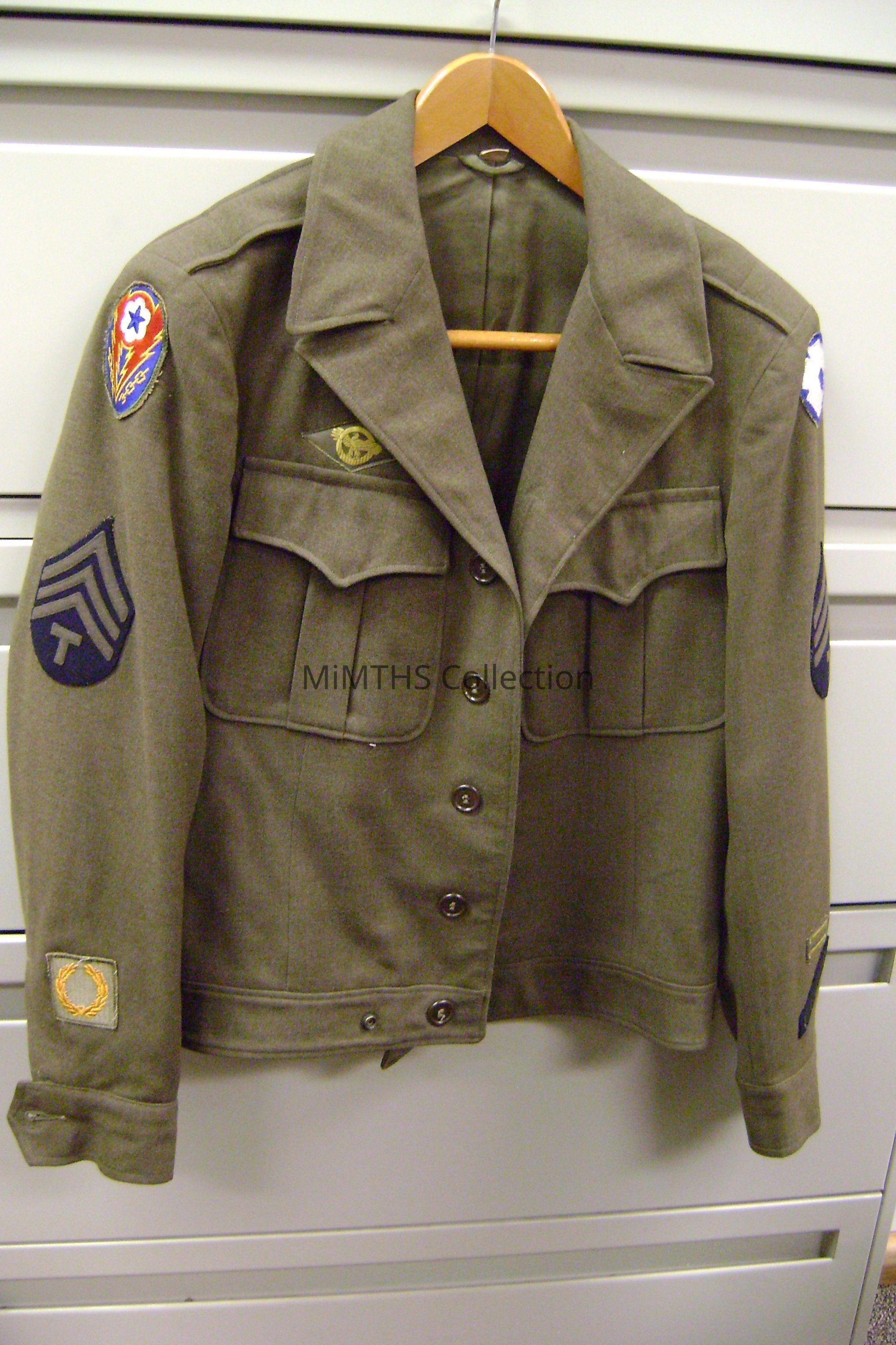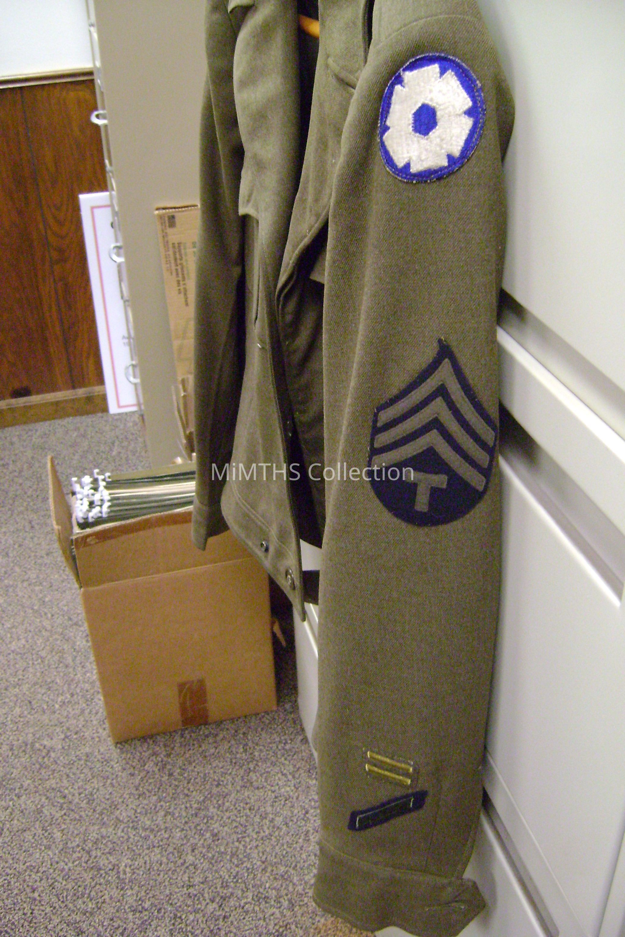 L Sleeve 6th Service Command, 2 Overseas Stripes, 1 Service Stripe (3 yrs Service 1 Overseas)