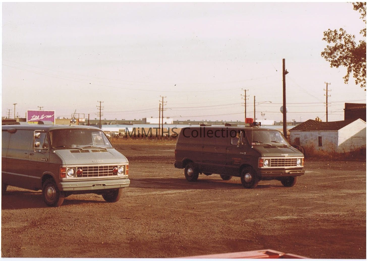 Photo of two mid-1980's Dodges van in USMC and USN markings.
