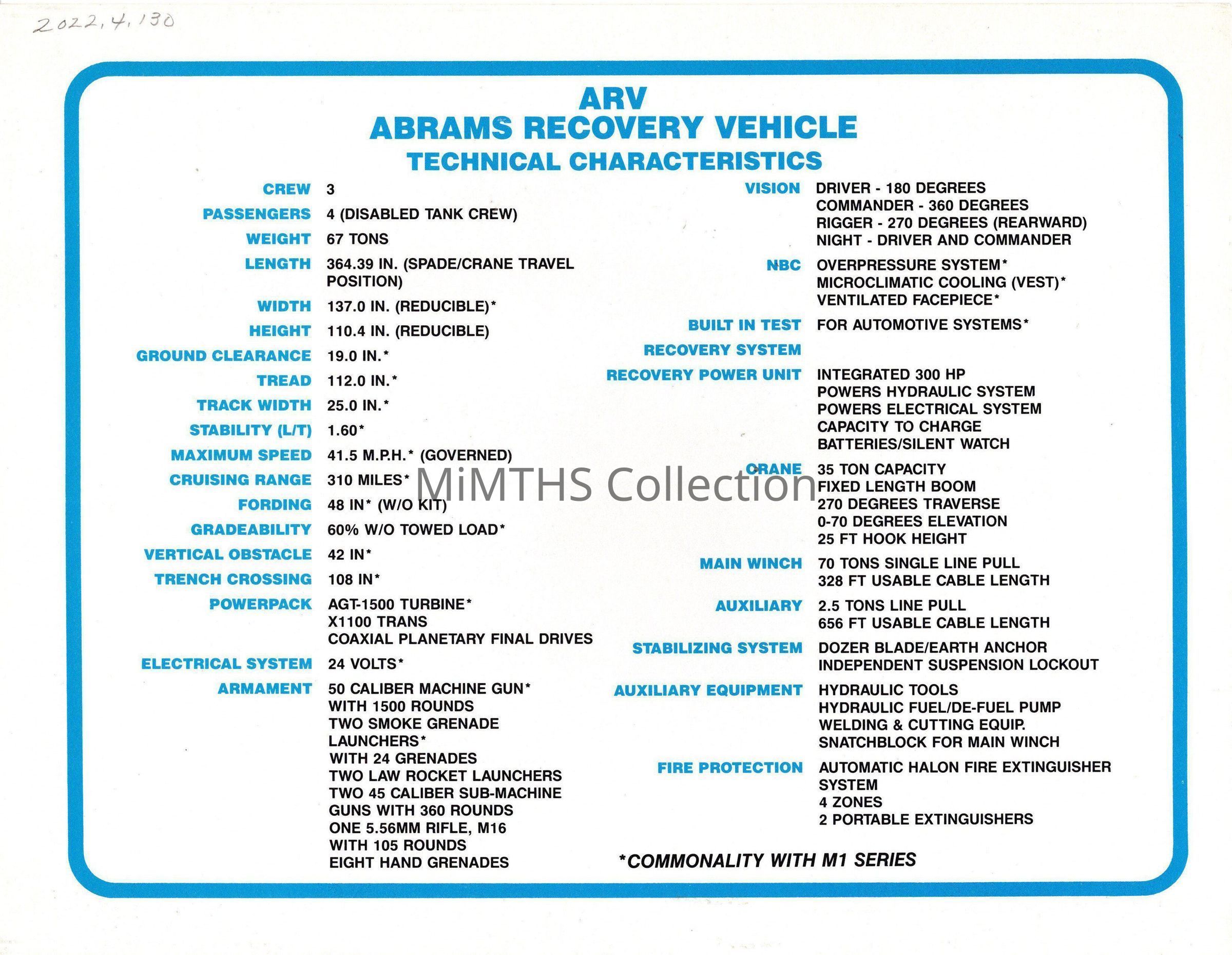 Abrams Recovery Vehicle Publicity CardEntry/Object ID