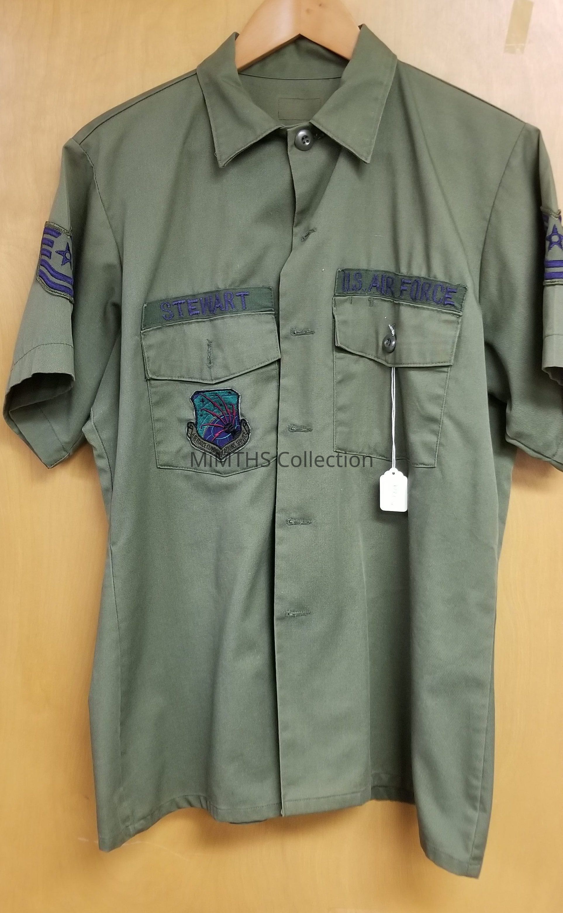Green Air Force shirt, private purchase, as worn by Staff Sgt. Martin D. StewartCataloged By
