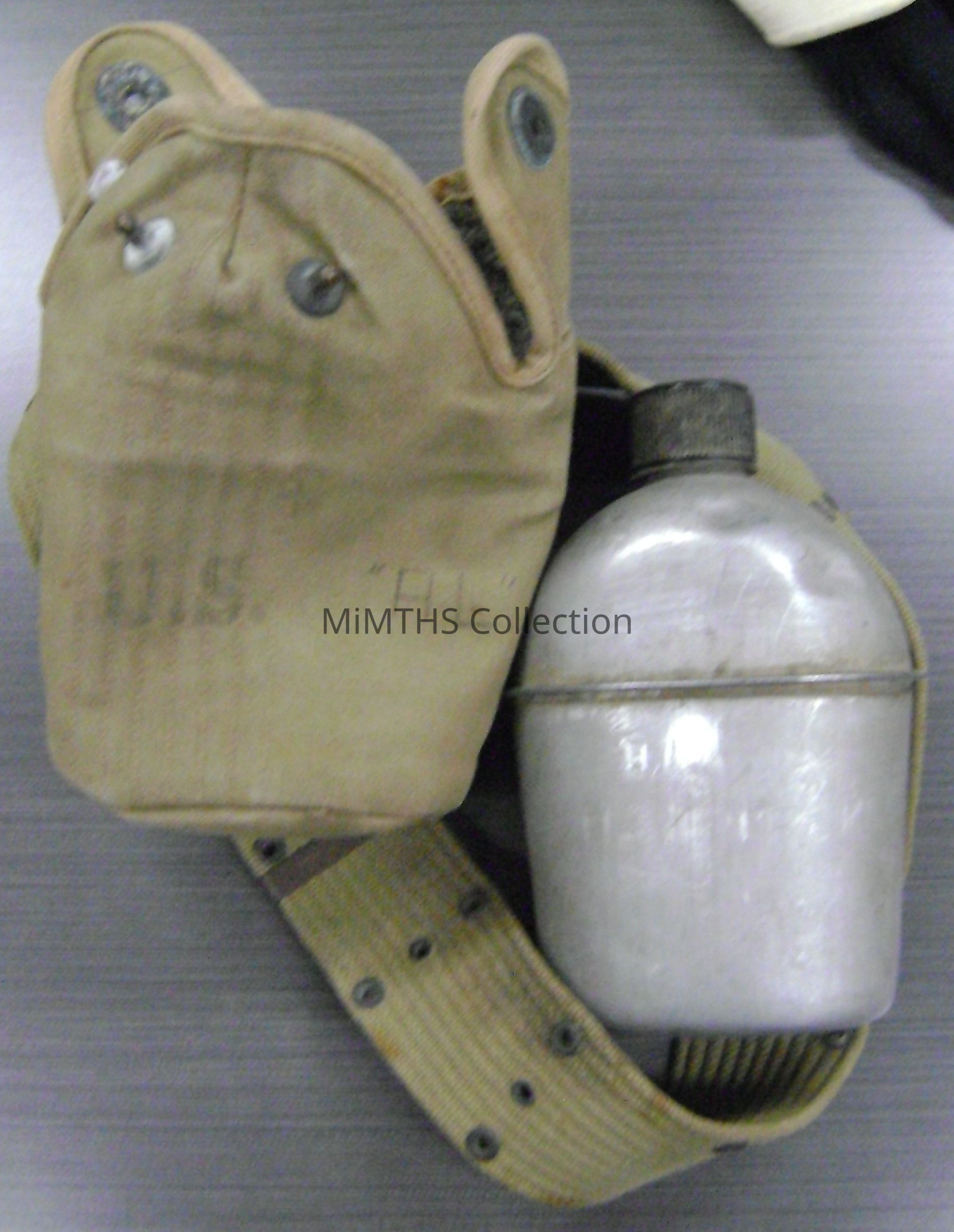 The primary source of hydration worn off ship or aboard ship when on duty. 1942 dated and has various markings denoting it belonged to Al Kopack, even scratched into the canteen itself. No cup is present as they were generally not needed and likely not issued with a single canteen especially for naval personnel.Cataloged By