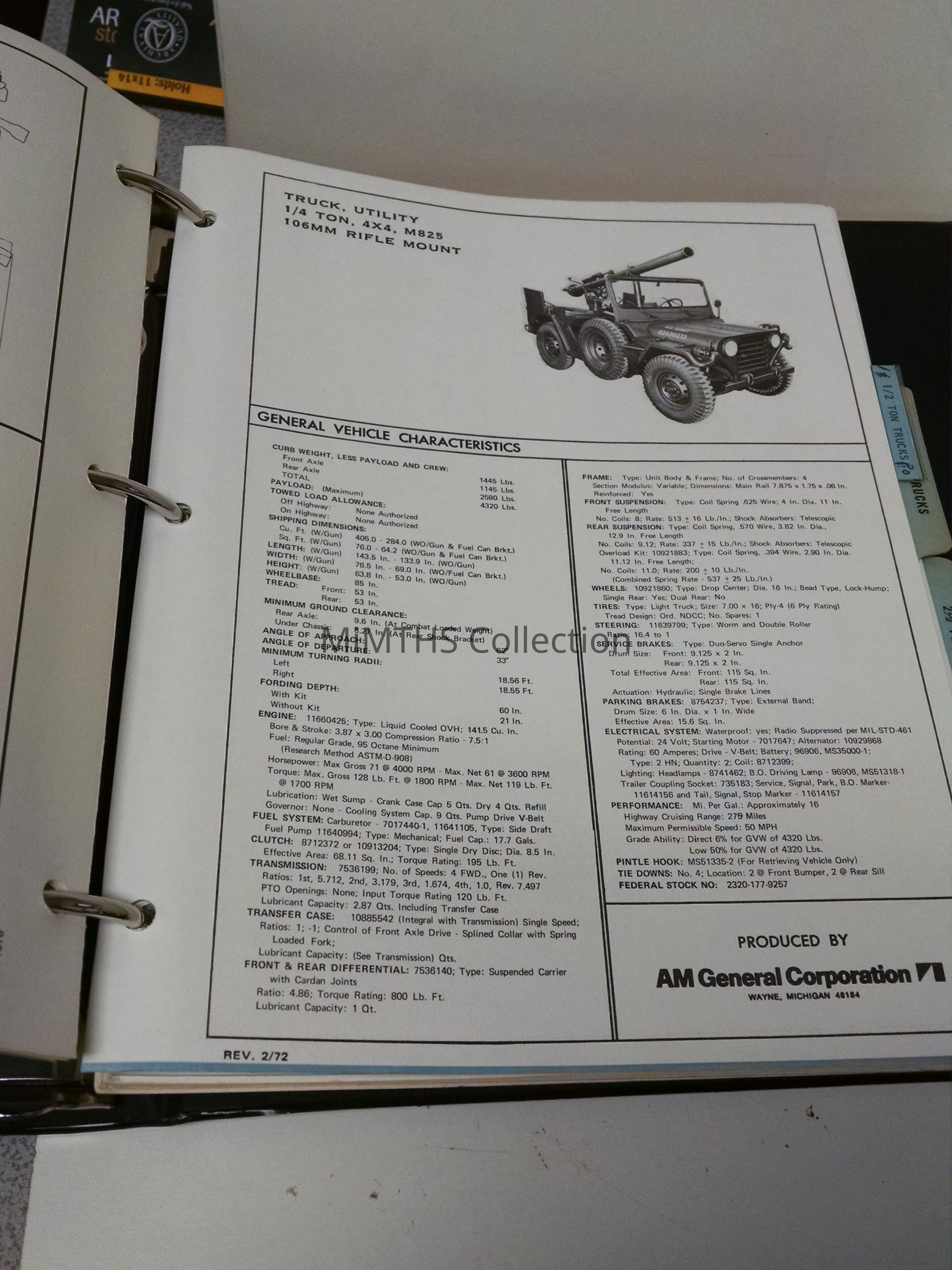 Binder with data sheets for AM General products early 1970's