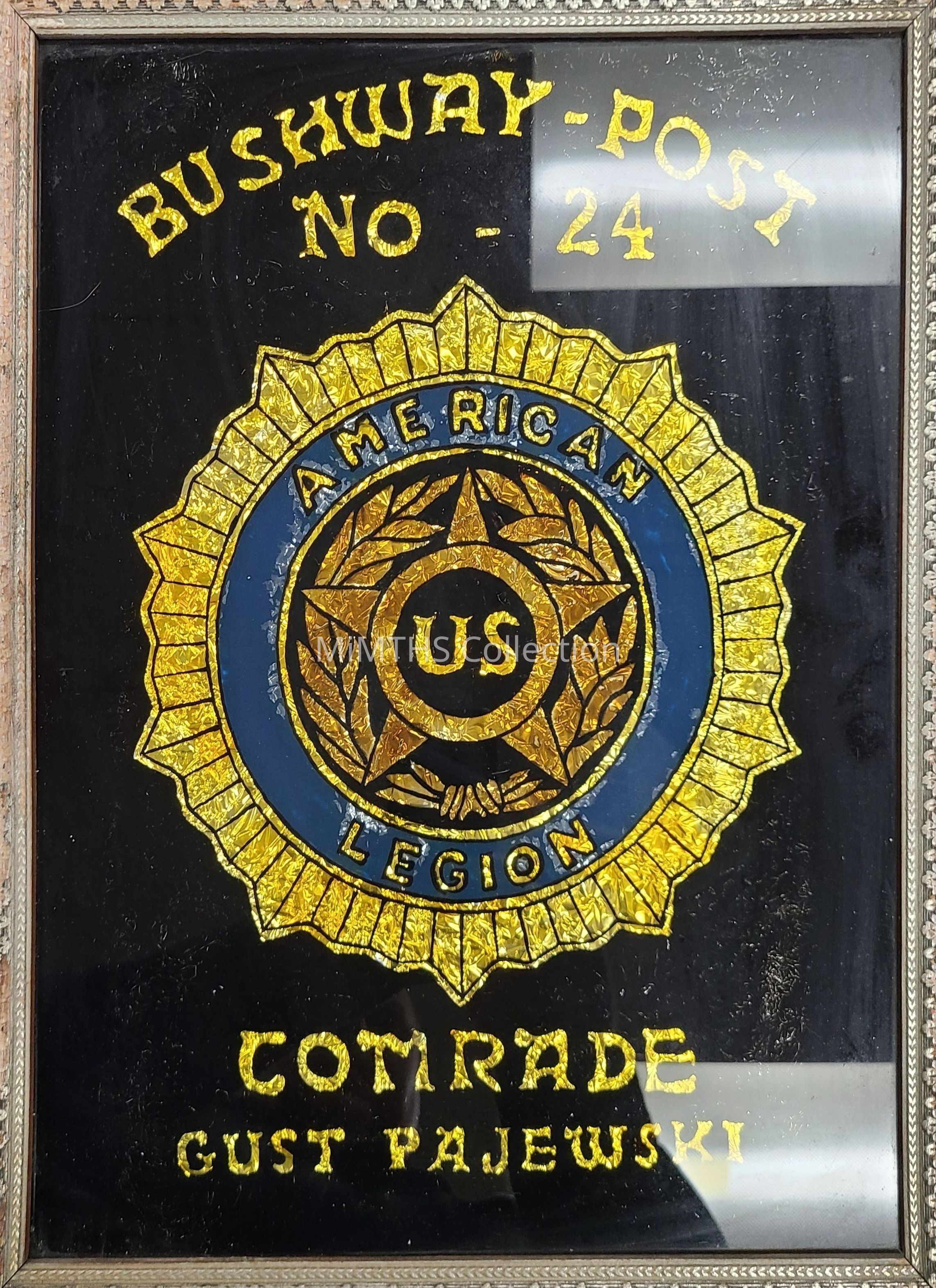 American Legion Bushway Post 24 Glass Plaque named to Comrade Gustav Pajewski