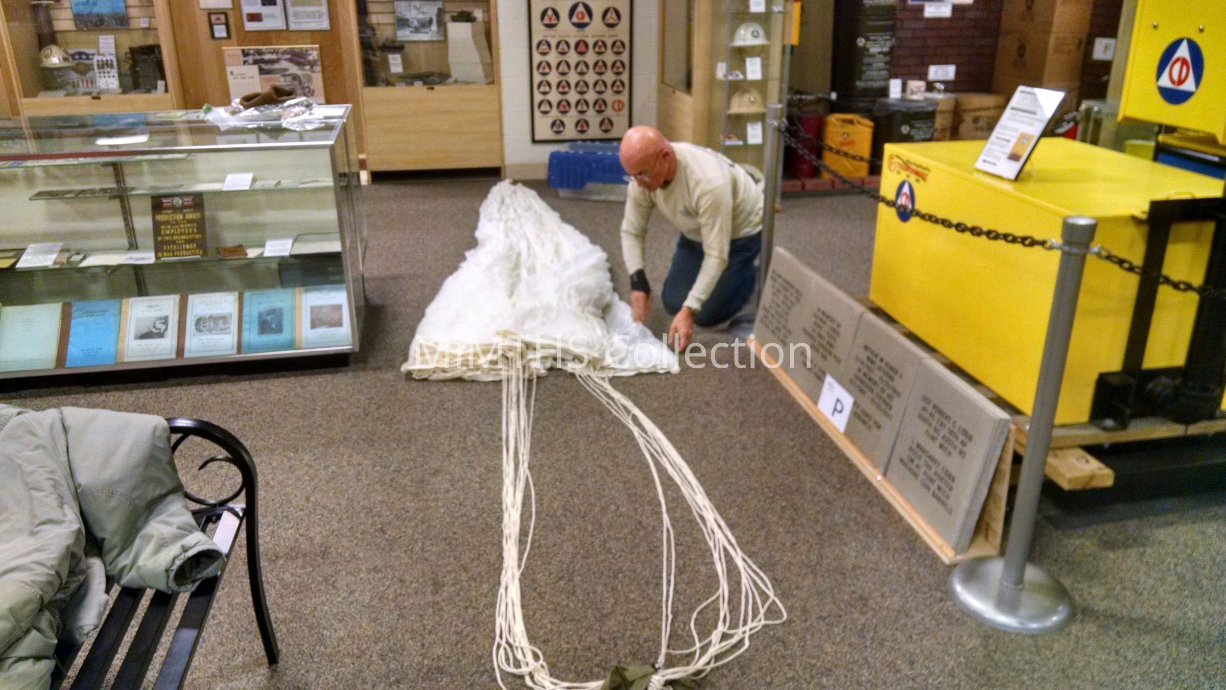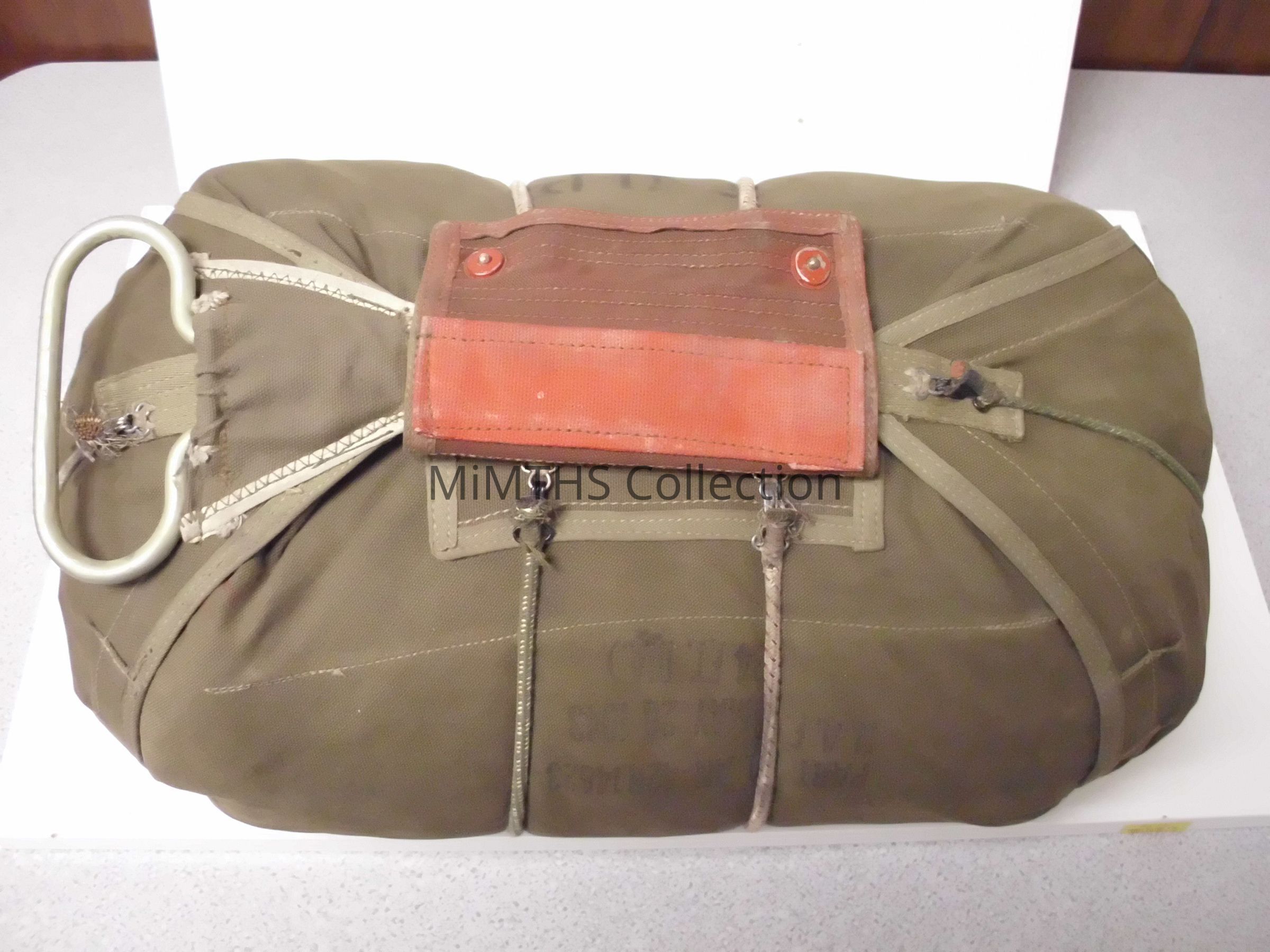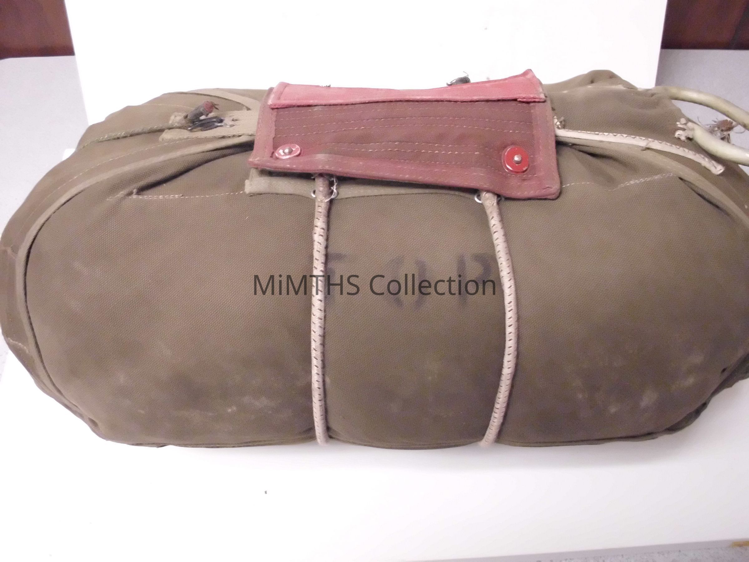 AN6513-1A parachute made by National Automotive Fibres Co of Detroit. This is a "red group" chest pac for the QAC rig worn by bomber crews.Cataloged By