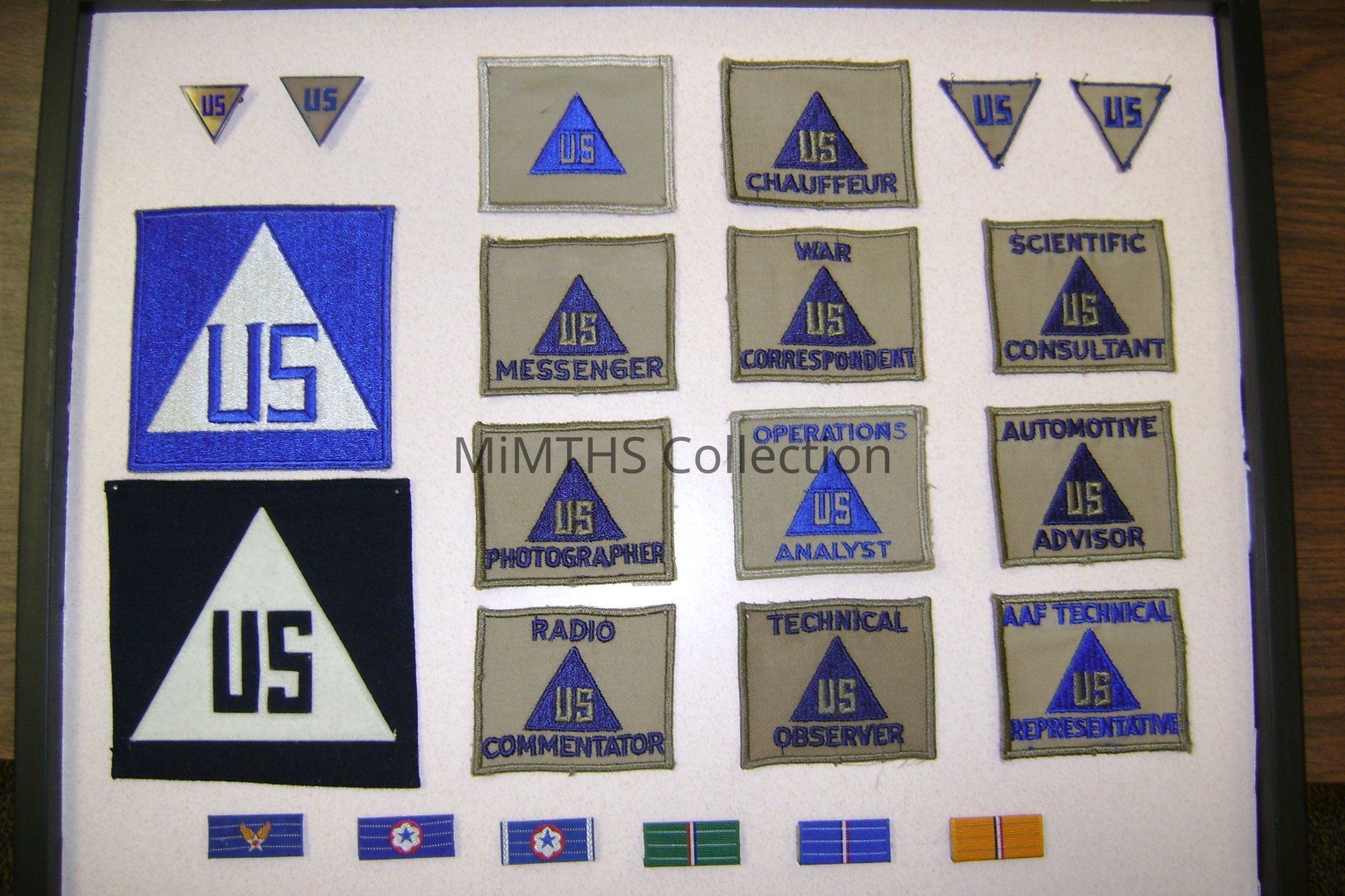 15"x19" framed case with WWII era US Army Civillian insignia.