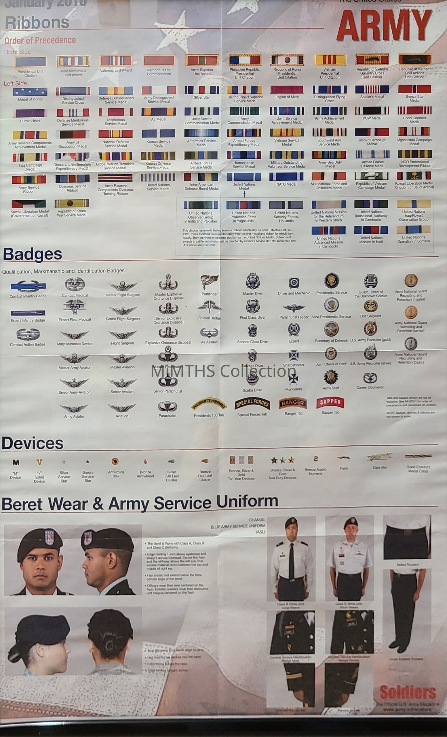 Poster from the January 2010 issue of "Soldiers" magazine showing the authorized US Army ribbons as of that date.Cataloged By
