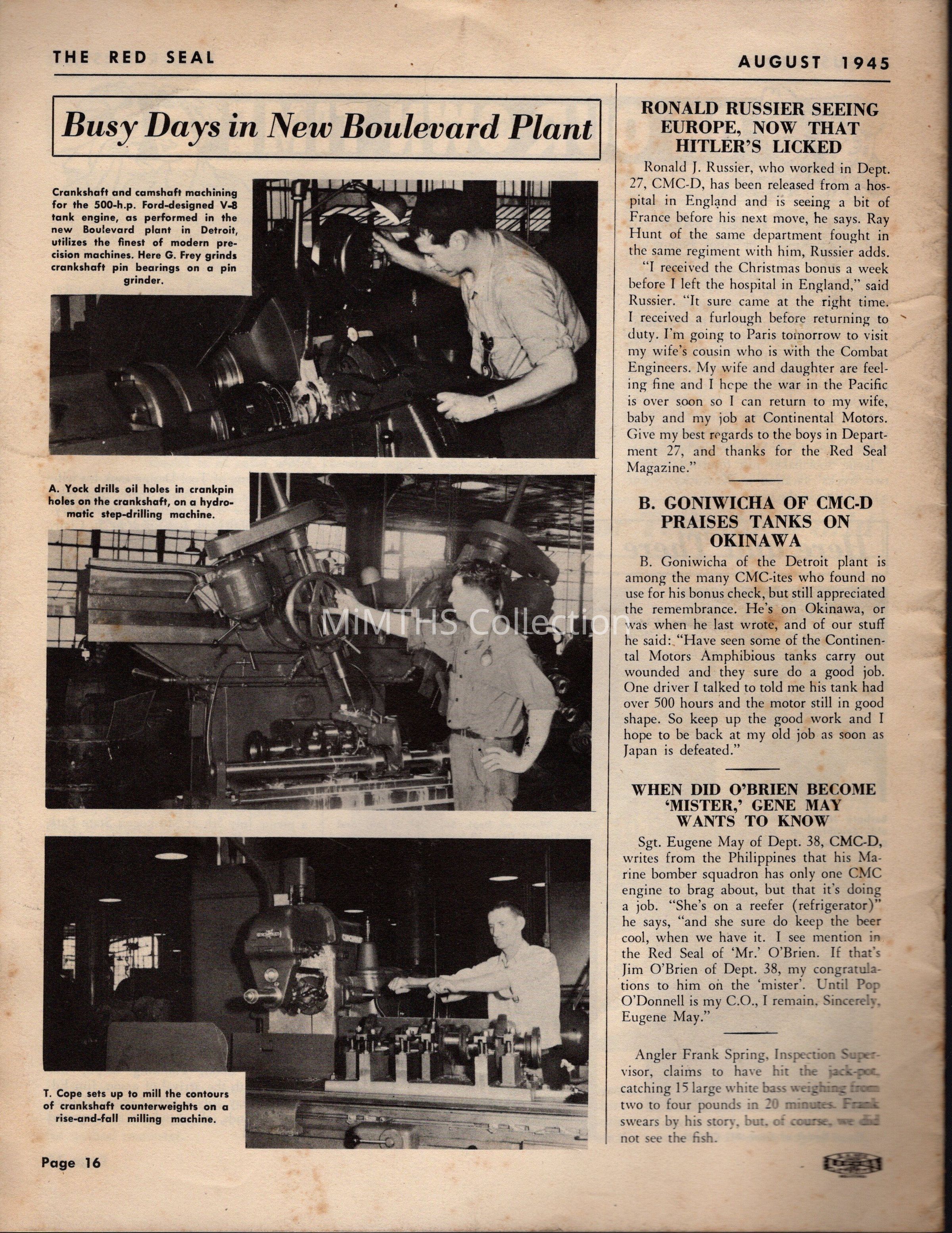 August 15, 1944 copy of the Continental Motors Corp magazine "The Red Seal"Cataloged By