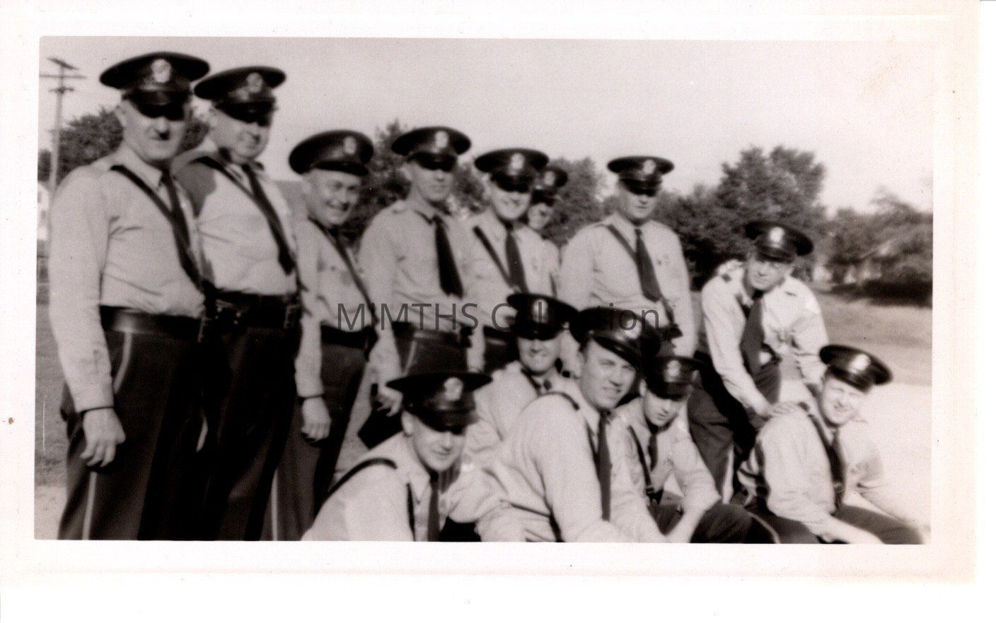 Unidentified group photo of 13 men in Auxiliary Military Police uniforms.Photograph Details