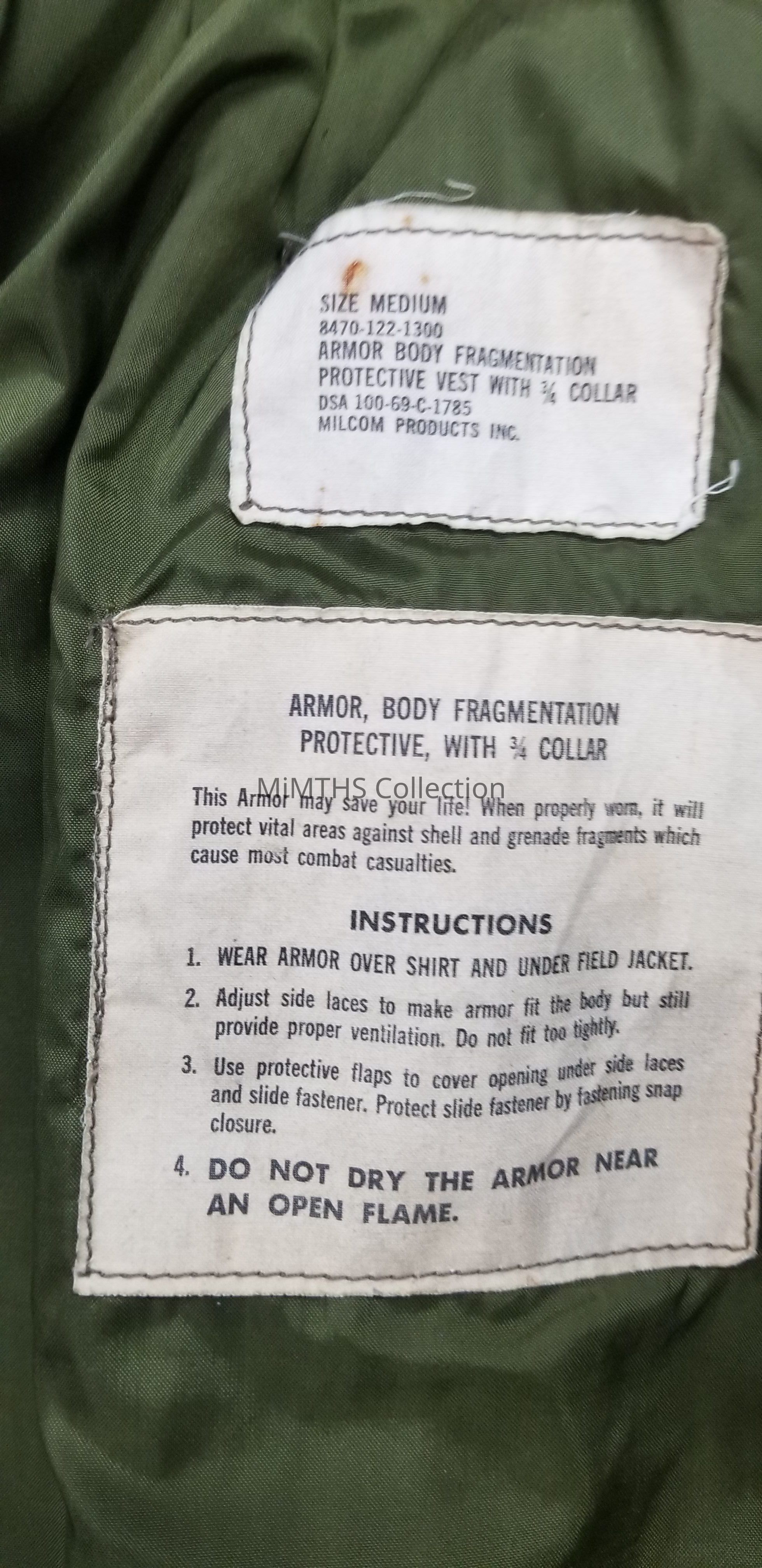 "Flak Jacket" 3/4 Collar Fragmentation Body armor purchase on a 1969 GSA contract.Cataloged By