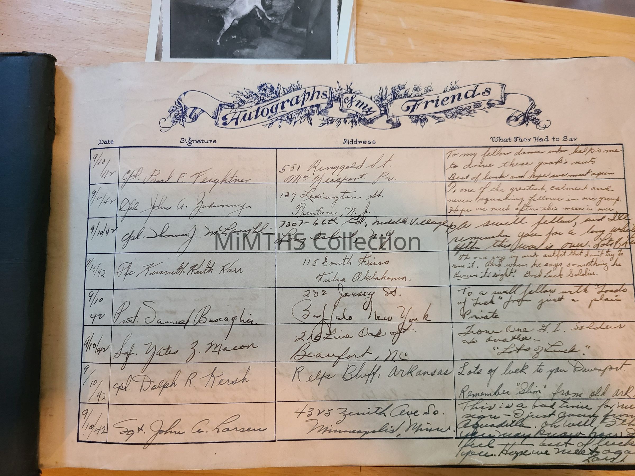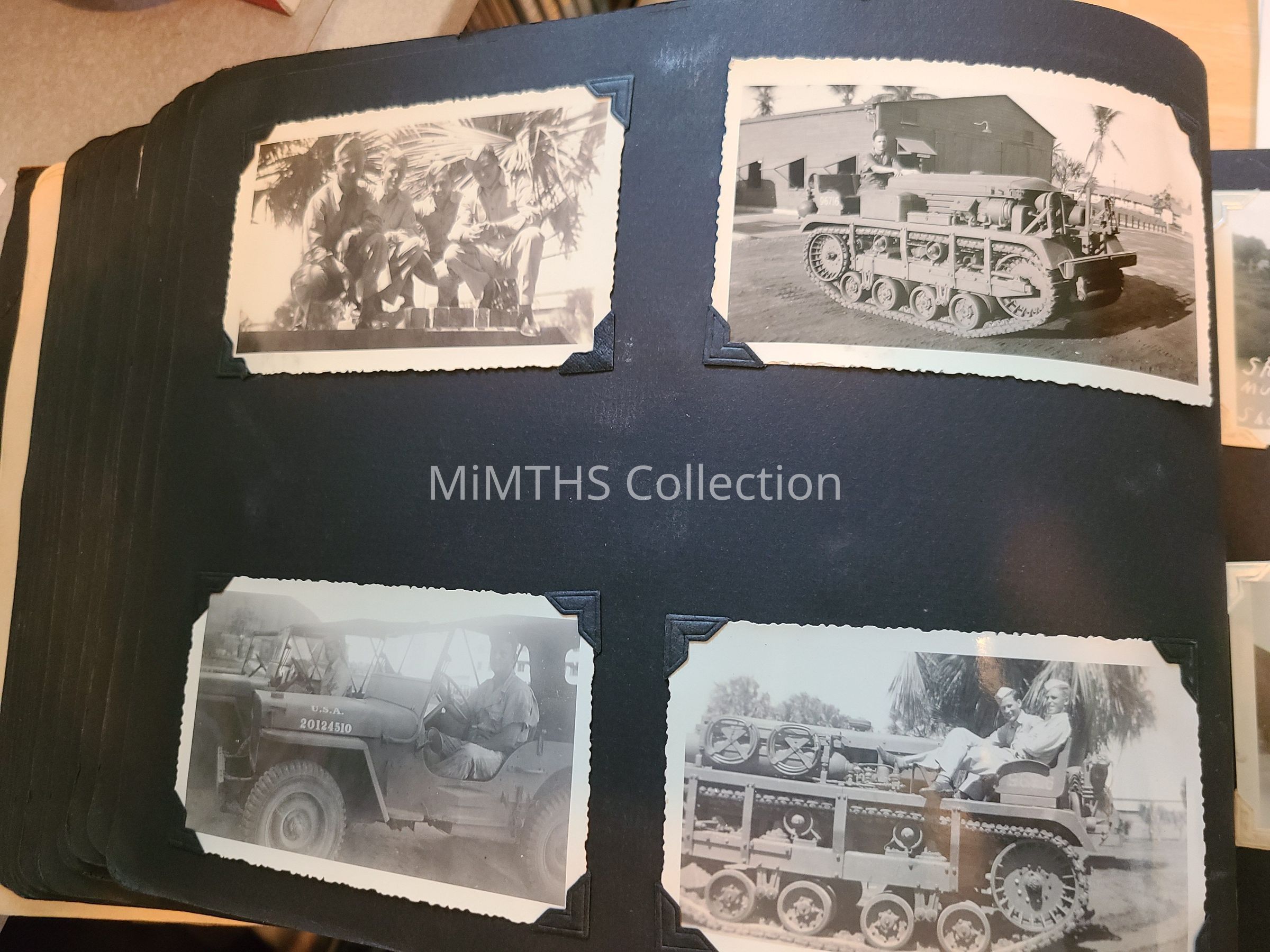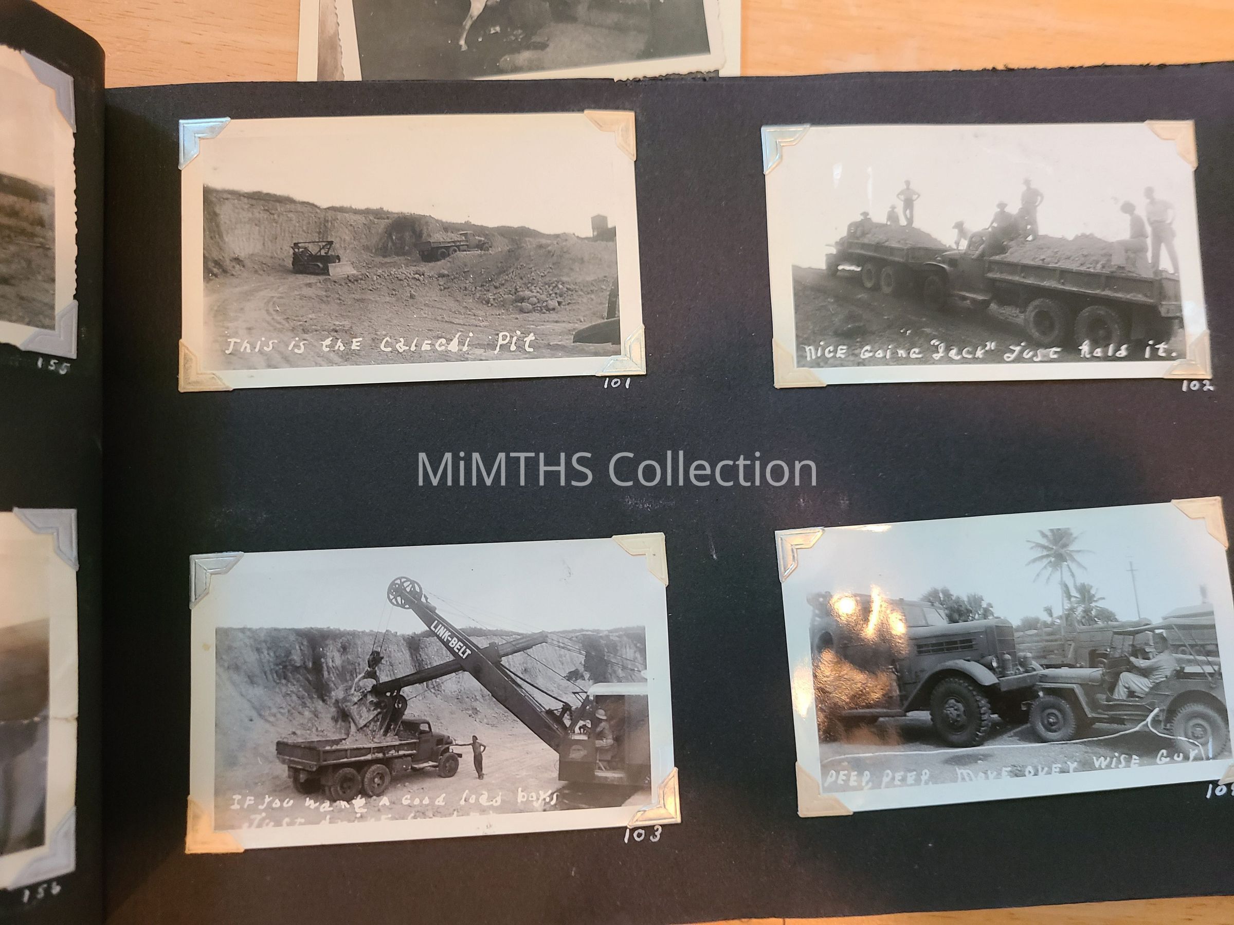 Photo album belonging to Paul Davenport of Michigan. Contains images from Borinquen Field Puerto Rico. Photos of people, buildings and vehicles, mostly wreckers and fire trucks.