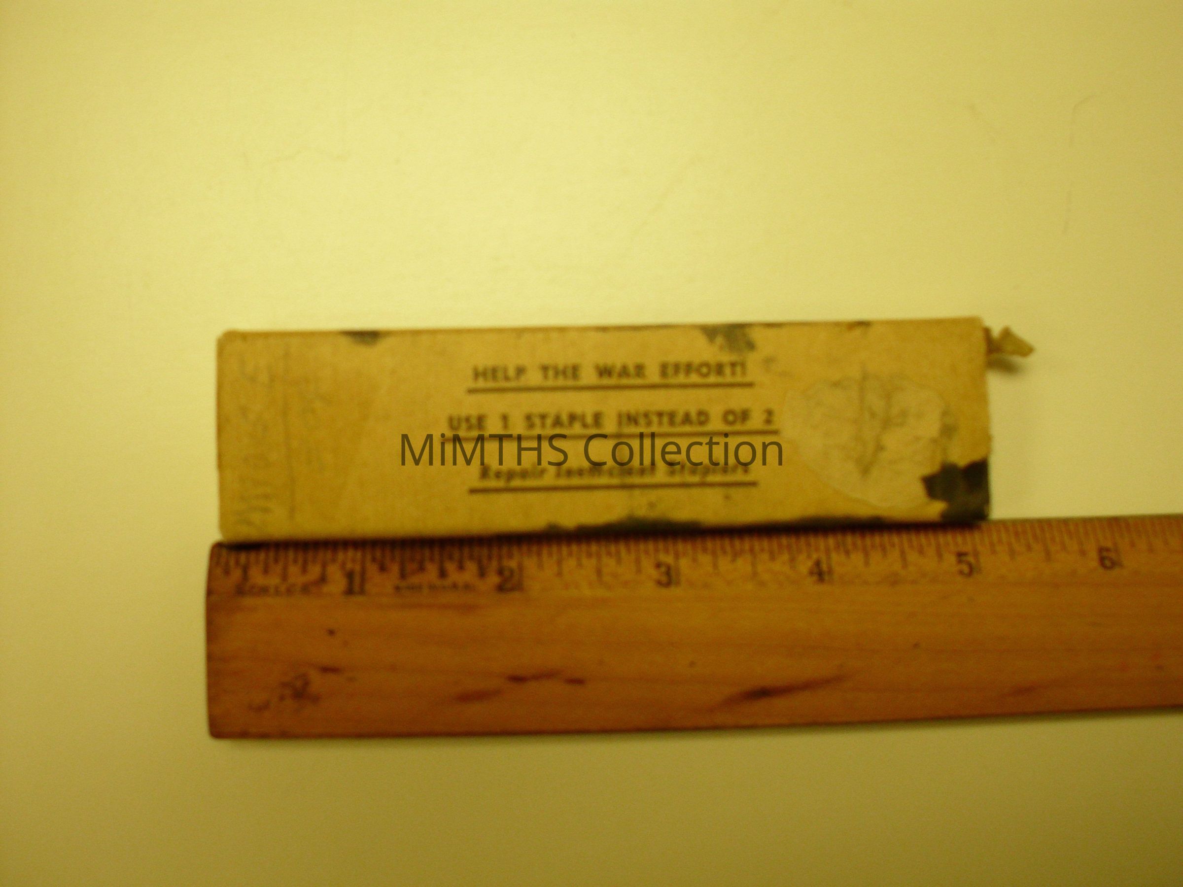 has the saying "Help the war effort, use 1 staple in stead of 2"Cataloged By
