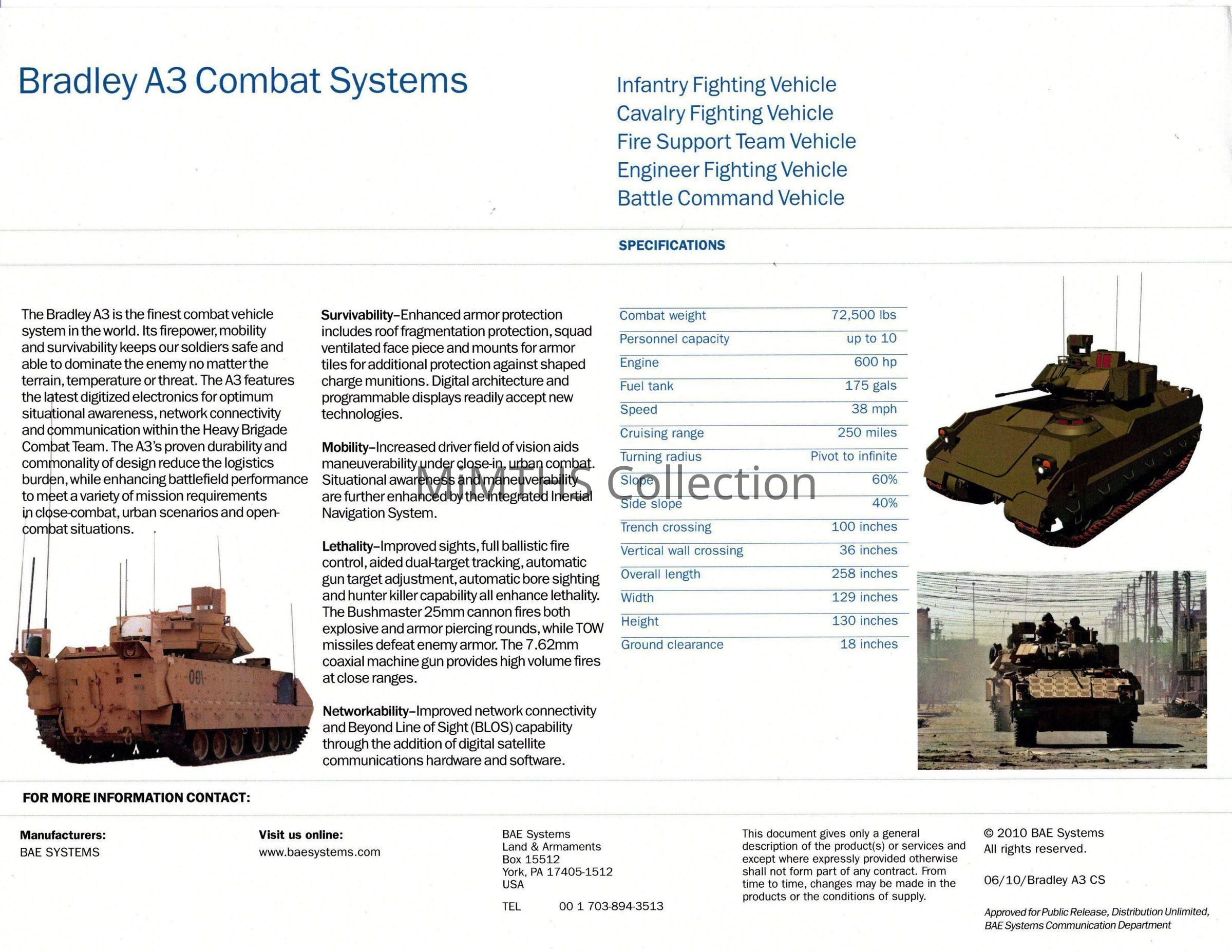 BAE publicity handout about the M2A3 Bradley Combat SystemCataloged By
