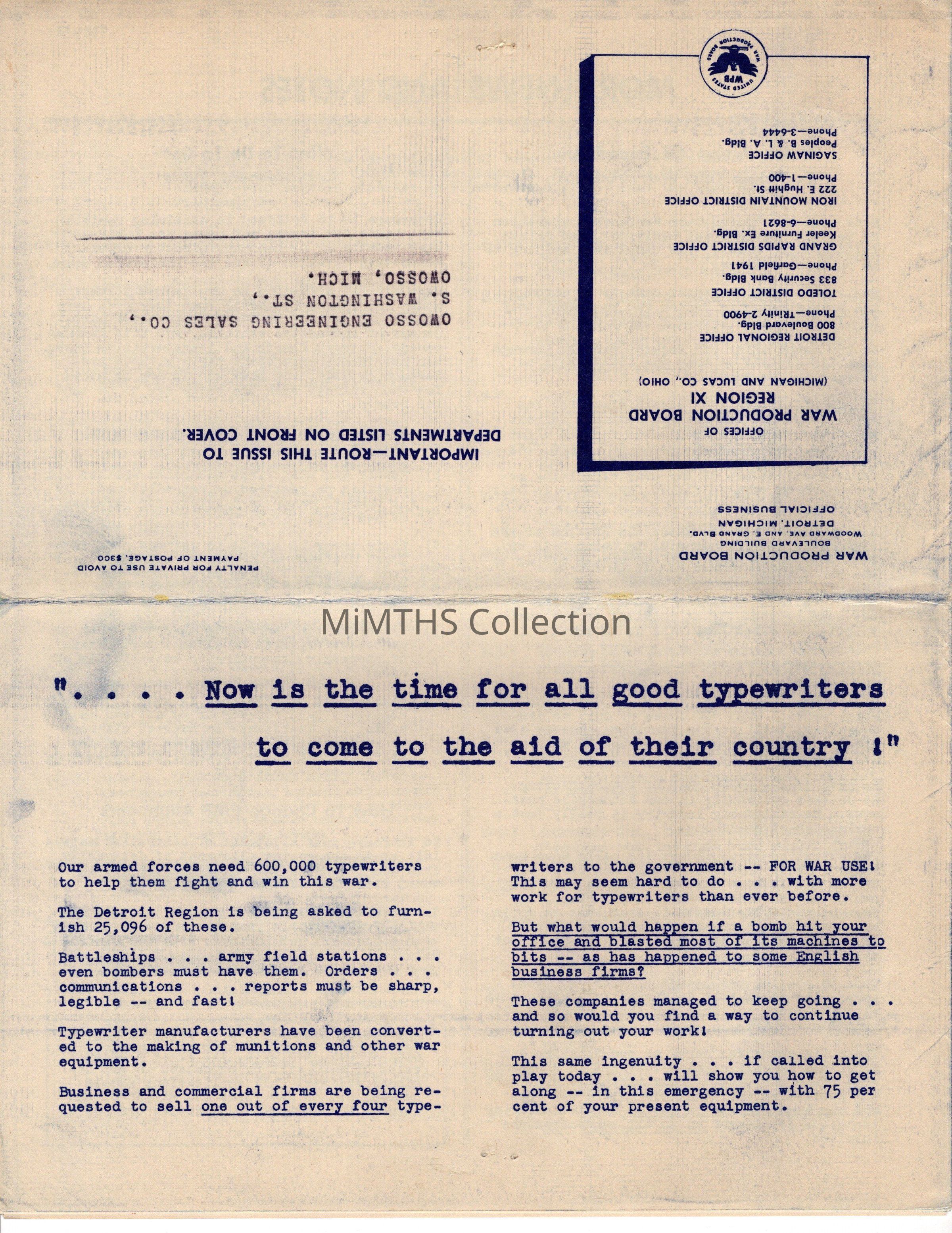 Addressed to Owosso Engineering Sales Co. located on S. Washington in Owosso.