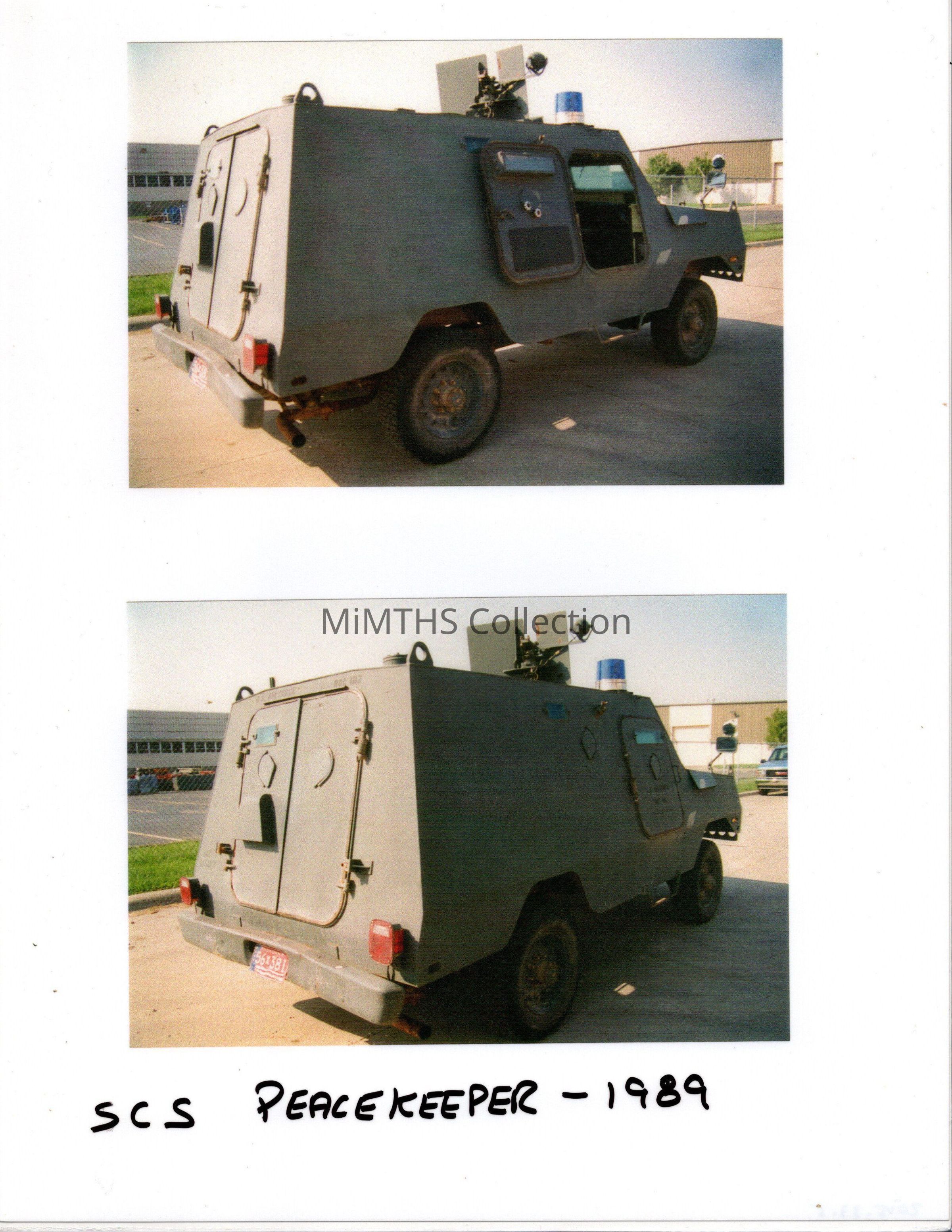 reprint of 2 photos of a Cadillac Gage Peacekeeper taken at Selfridge ANGB in 1989. This is the vehicle that went to the St. Clair Shores Police department.