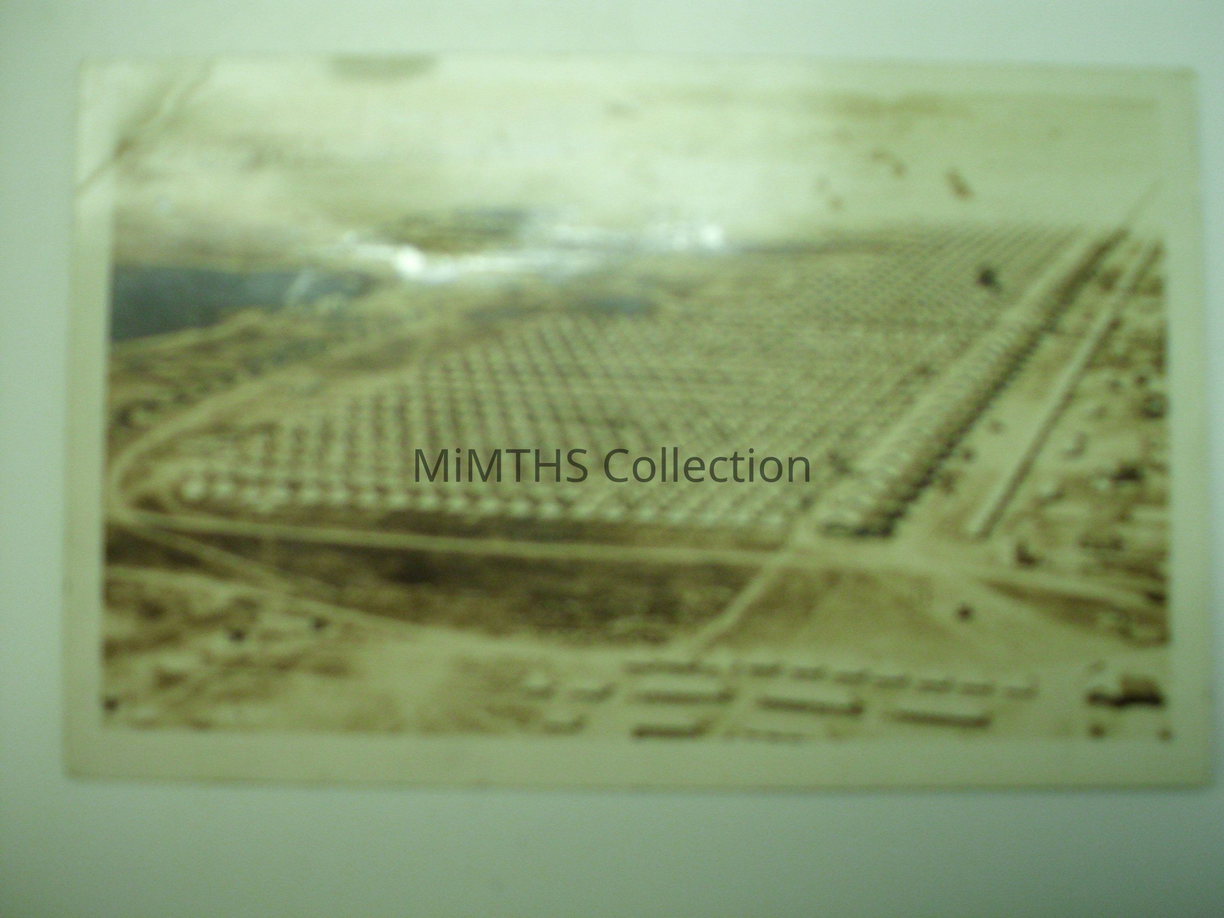 Photo post card showing an aerial view of the Camp Custer "Tent City". Unmarked on reverse, never sent.Cataloged By