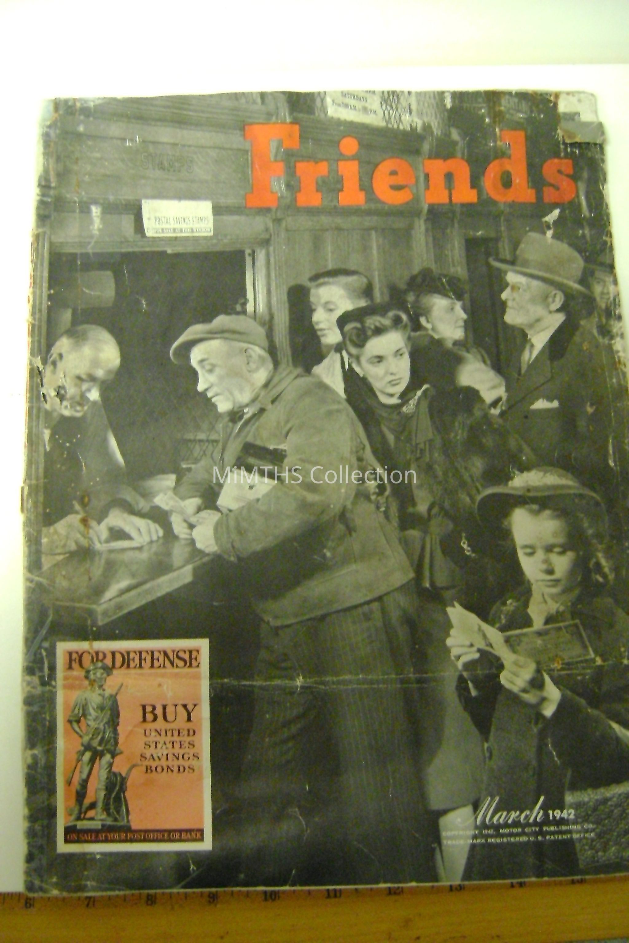 March 1942 issue of "Friends" magazine printed by Chevrolet, this was the last issue printed, publication was suspended "for the duration"Cataloged By