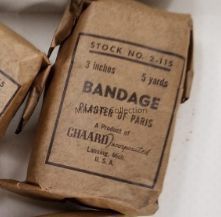 WWII Era palster of paris bandage used for making casts. manufactured by Chaared Incorporated of Lansing, MI during WWII.