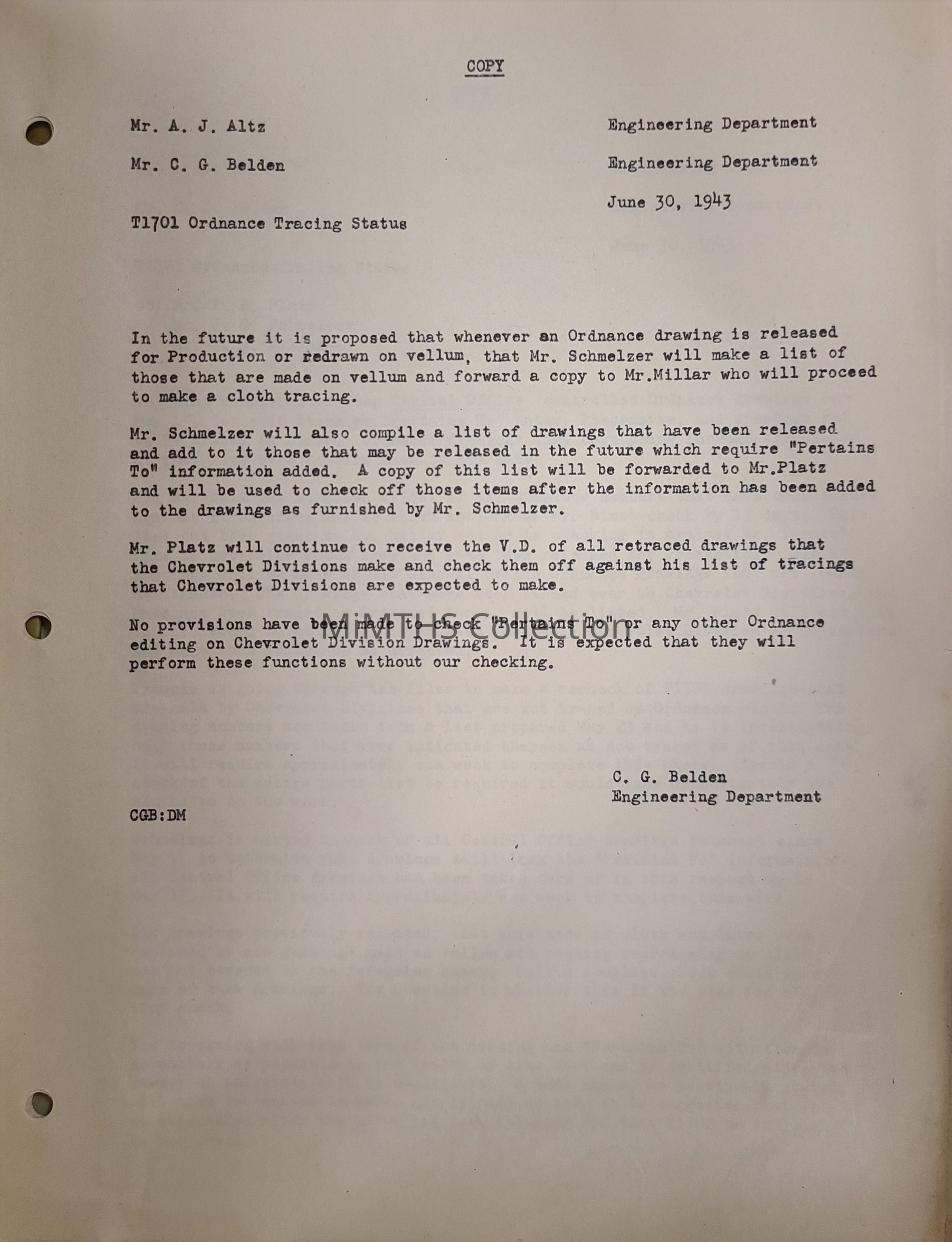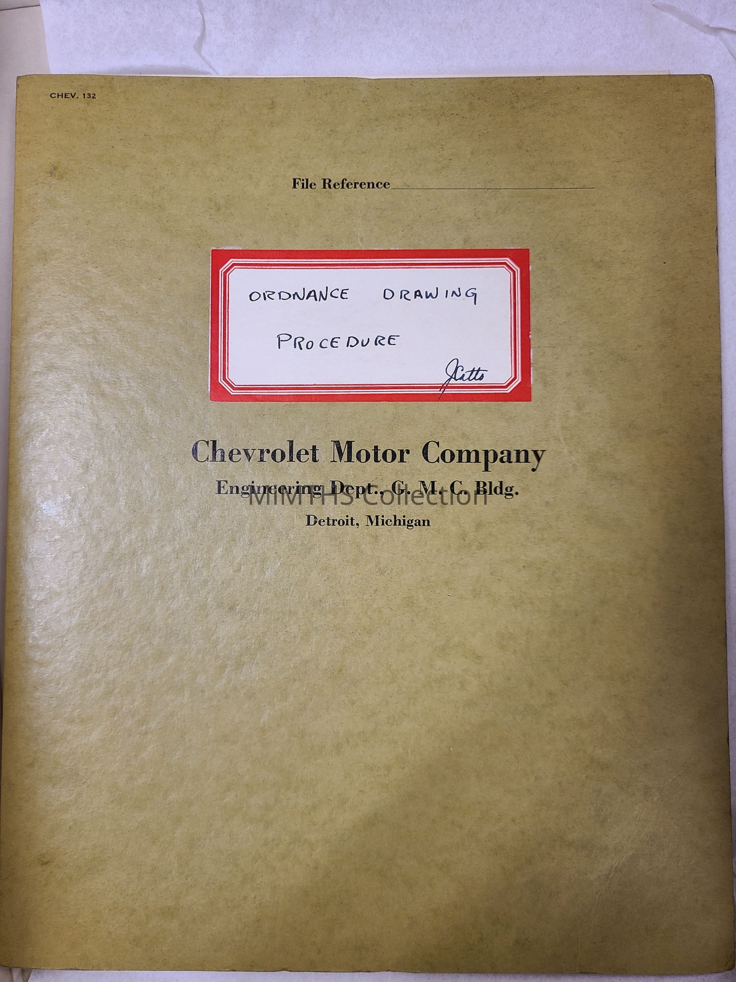 File Reference from Chevrolet Motor Company, Detroit, Mich, 1943. On Ordnace Drawing Procedures