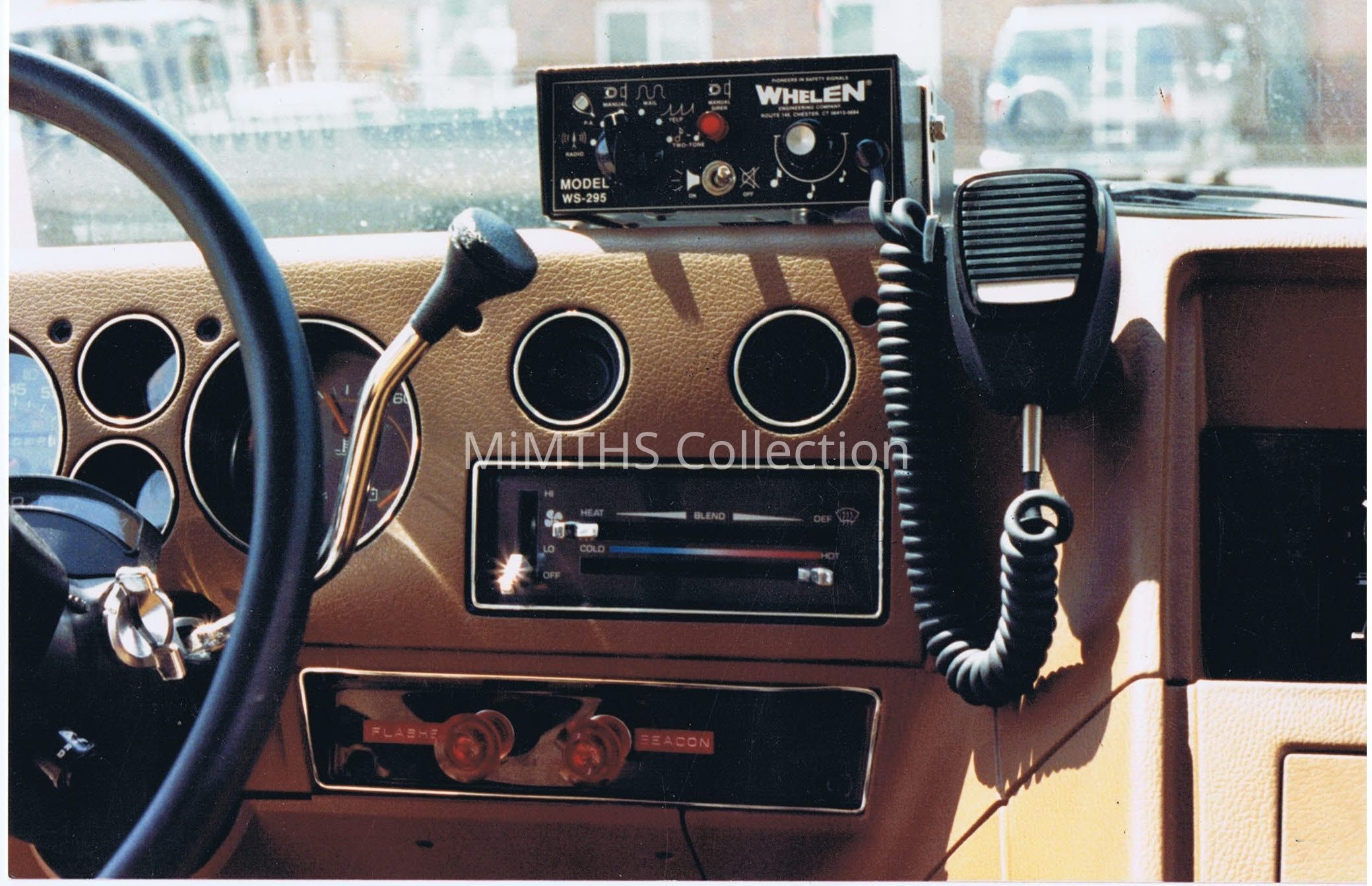 Photo of a mid-1980's Chevrolet Van set up as an emergency vehicle. Photo shows the dash with the Whelen controller in place.