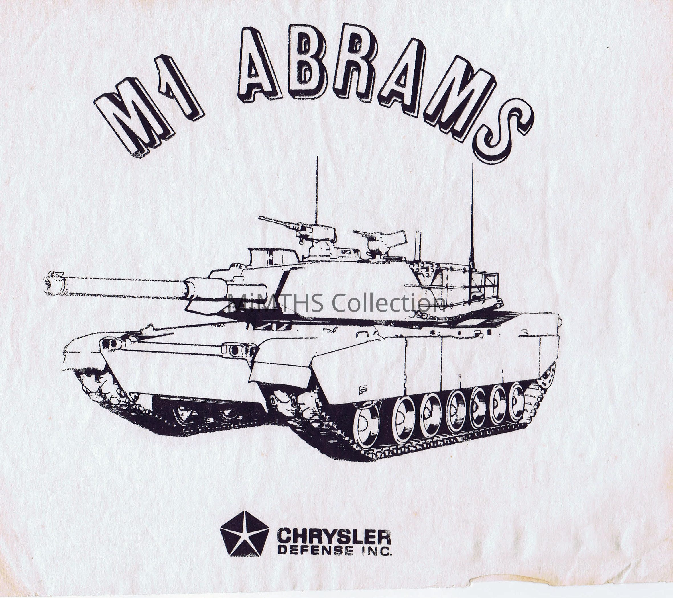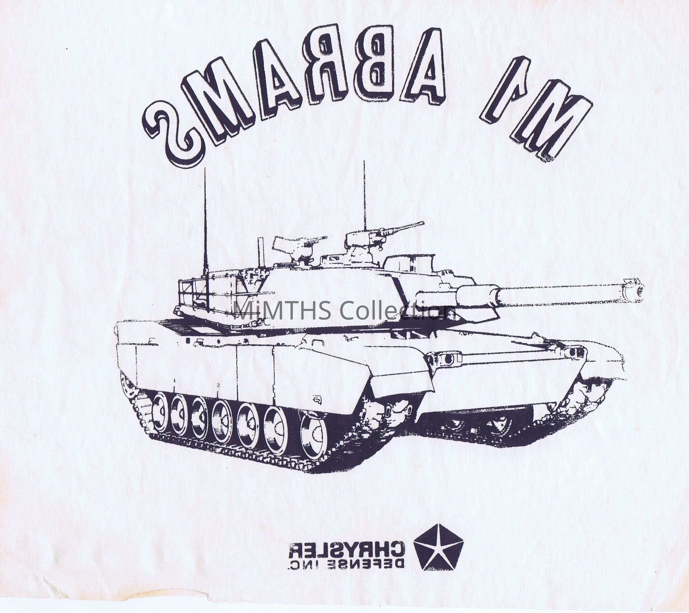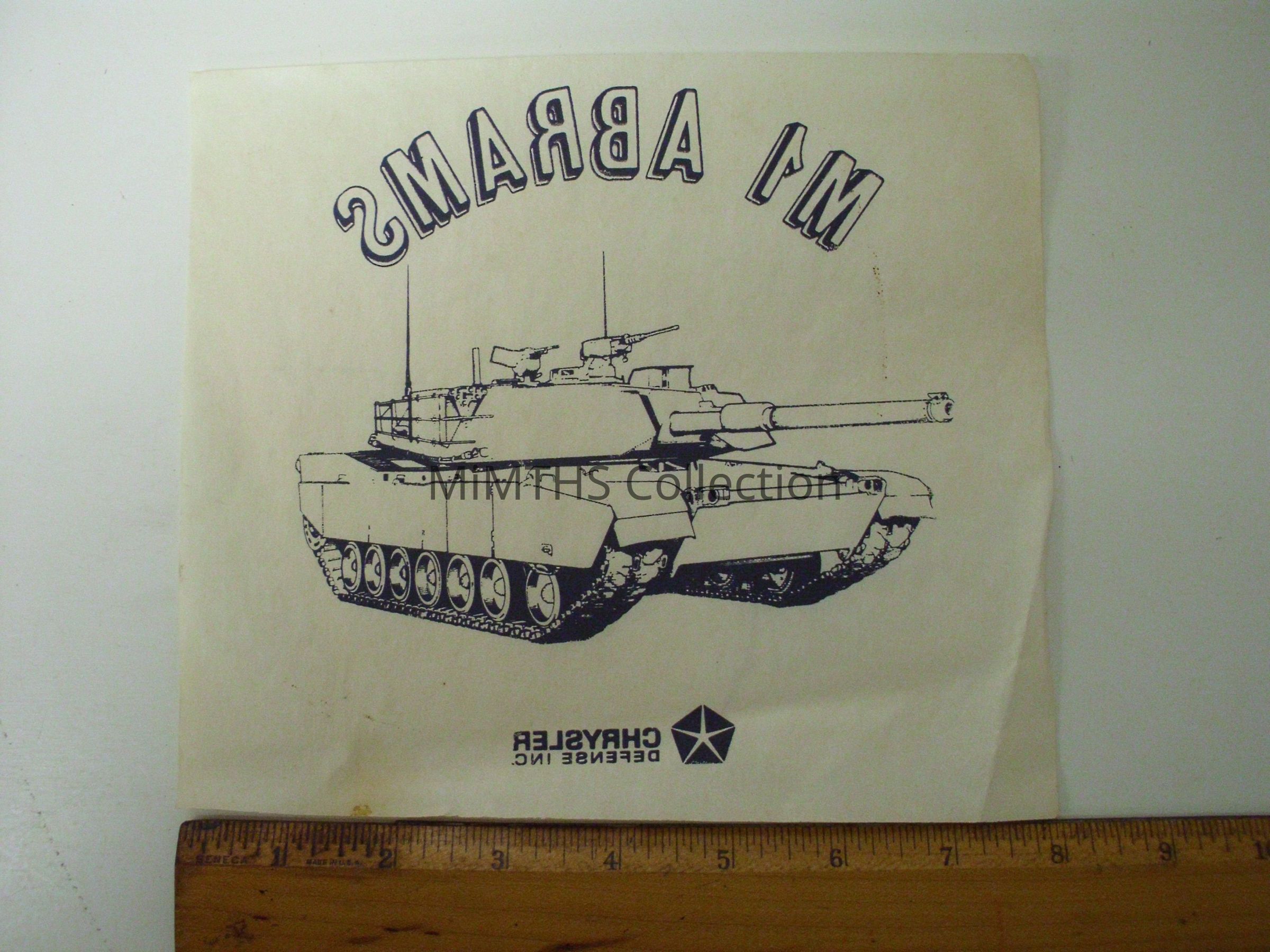 7x8" iron on, unused, for M1 Abrams, Chrysler Defense Inc.Cataloged By