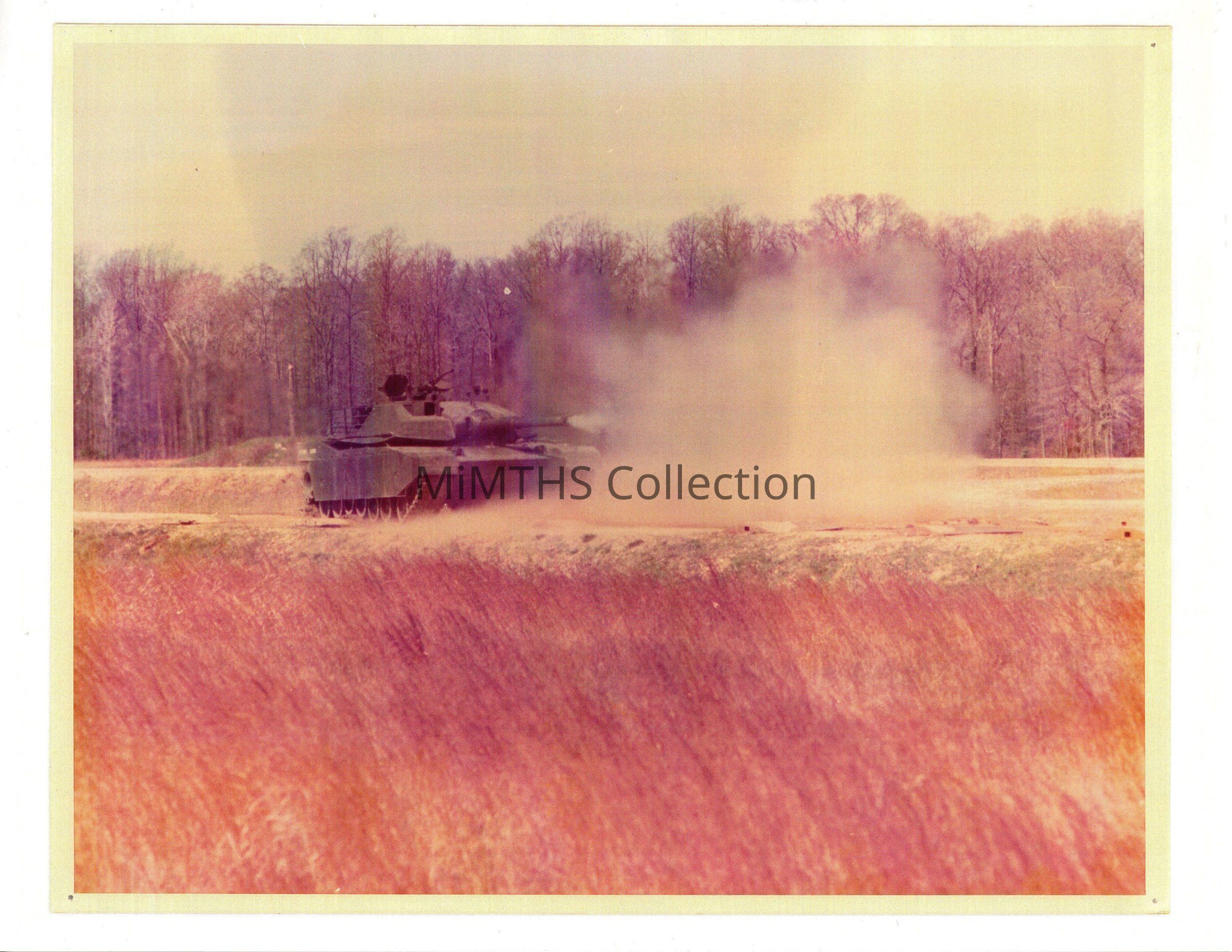 Front view of the Chrysler XM1 Prototype Validation Vehicle doing live fire.Cataloged By