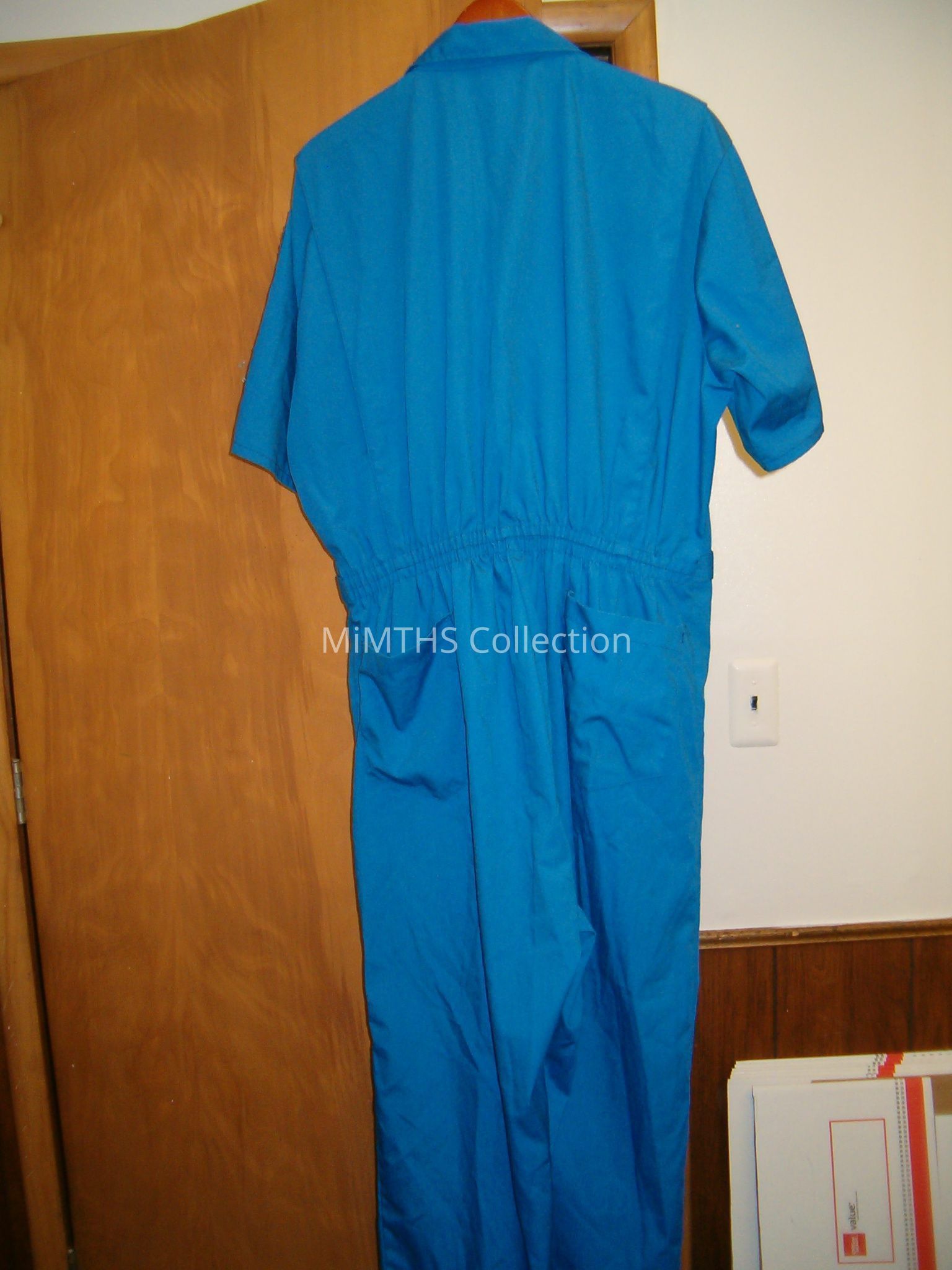Blue coveralls, short sleeved, X-Large regular with Michigan CAP insignia and major rank,