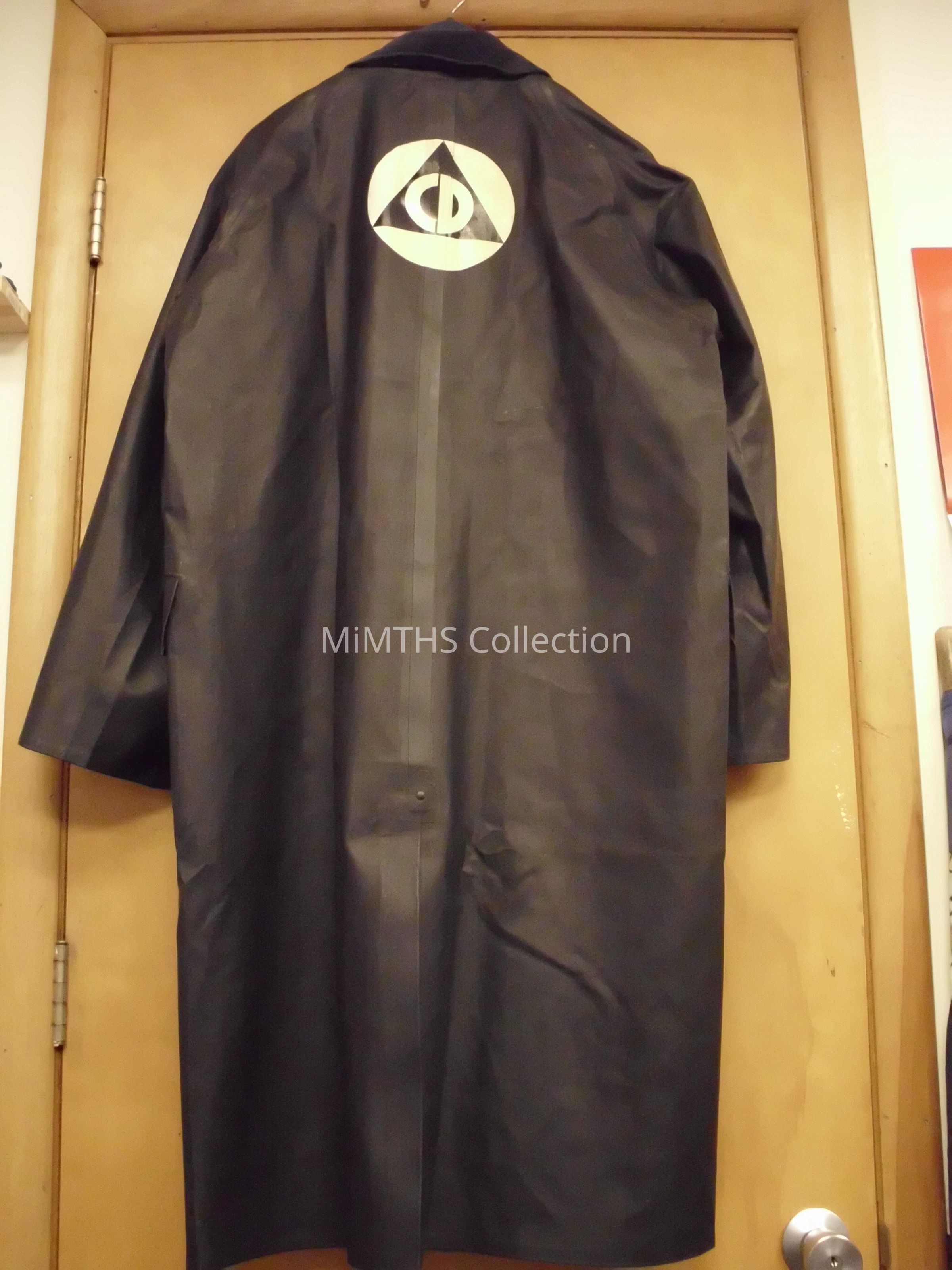 Black Raymaster Vulcomform foul weather overcoat with Civil Defense logo on the backCataloged By