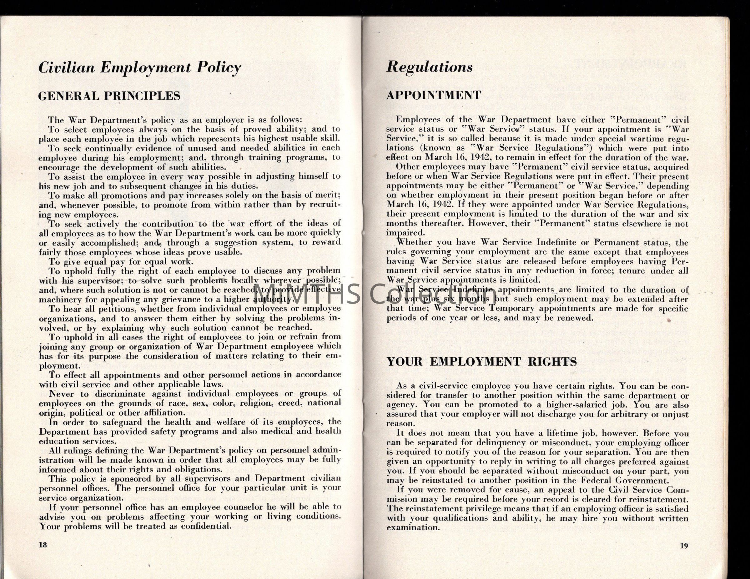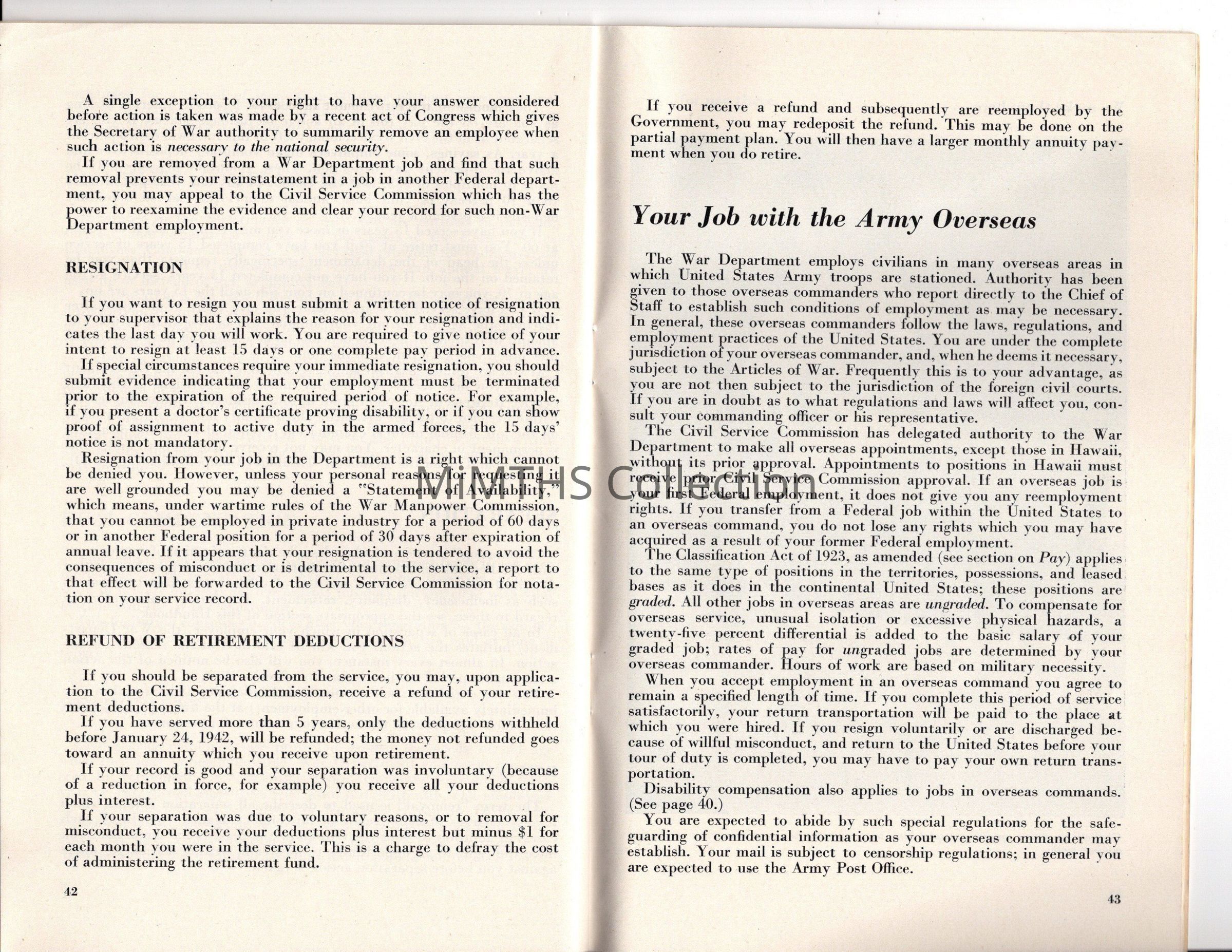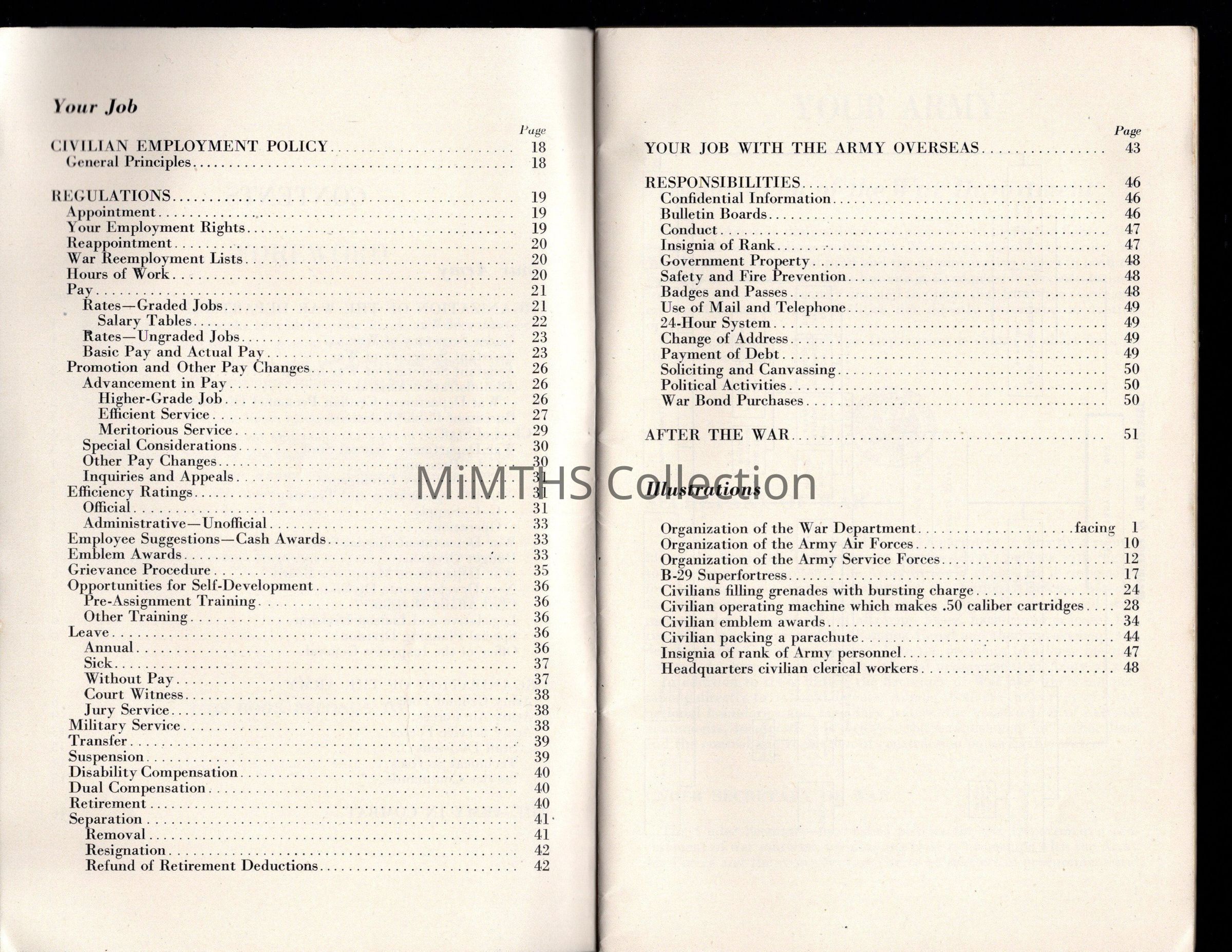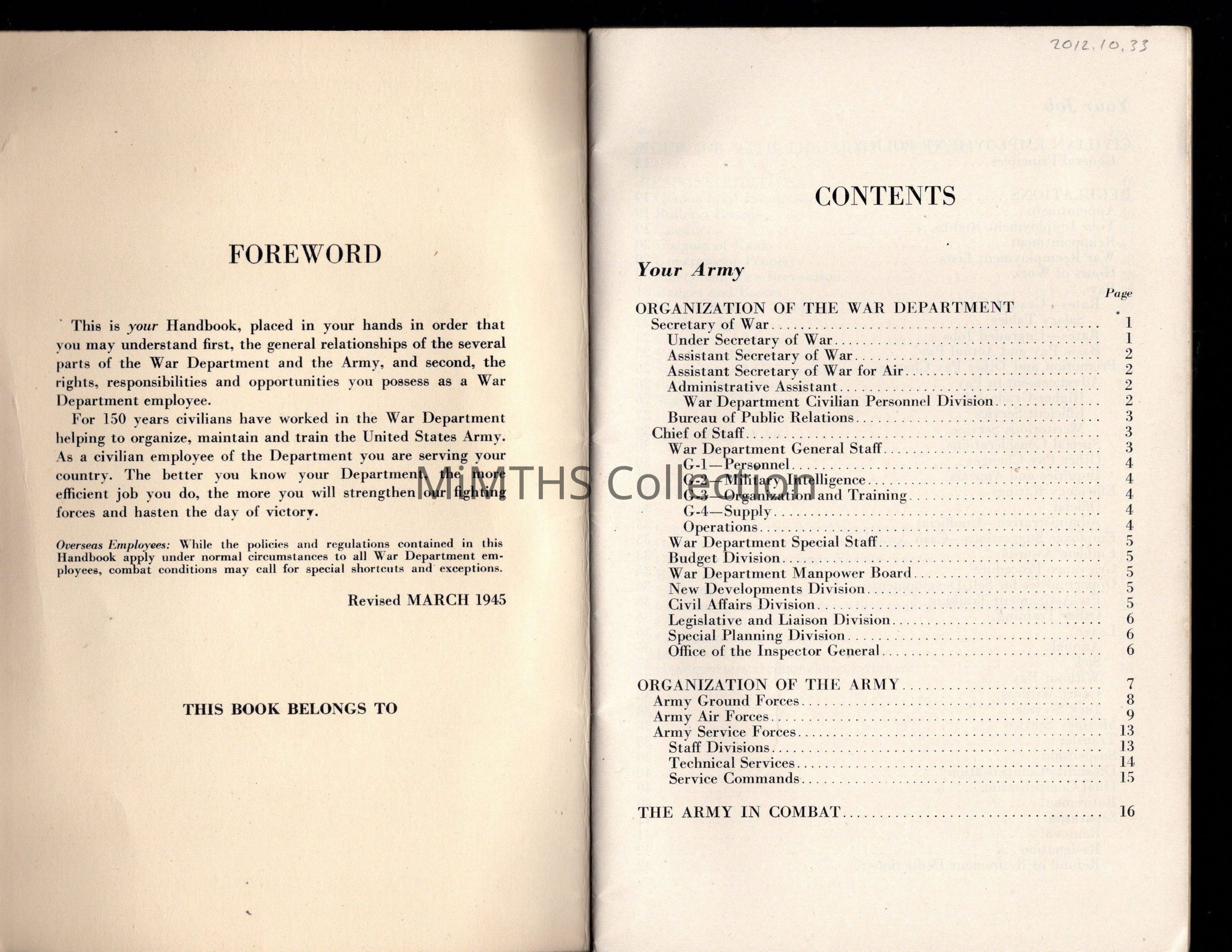 Booklet providing information on War Department Structure and Job options for civilian employees of the War Department.