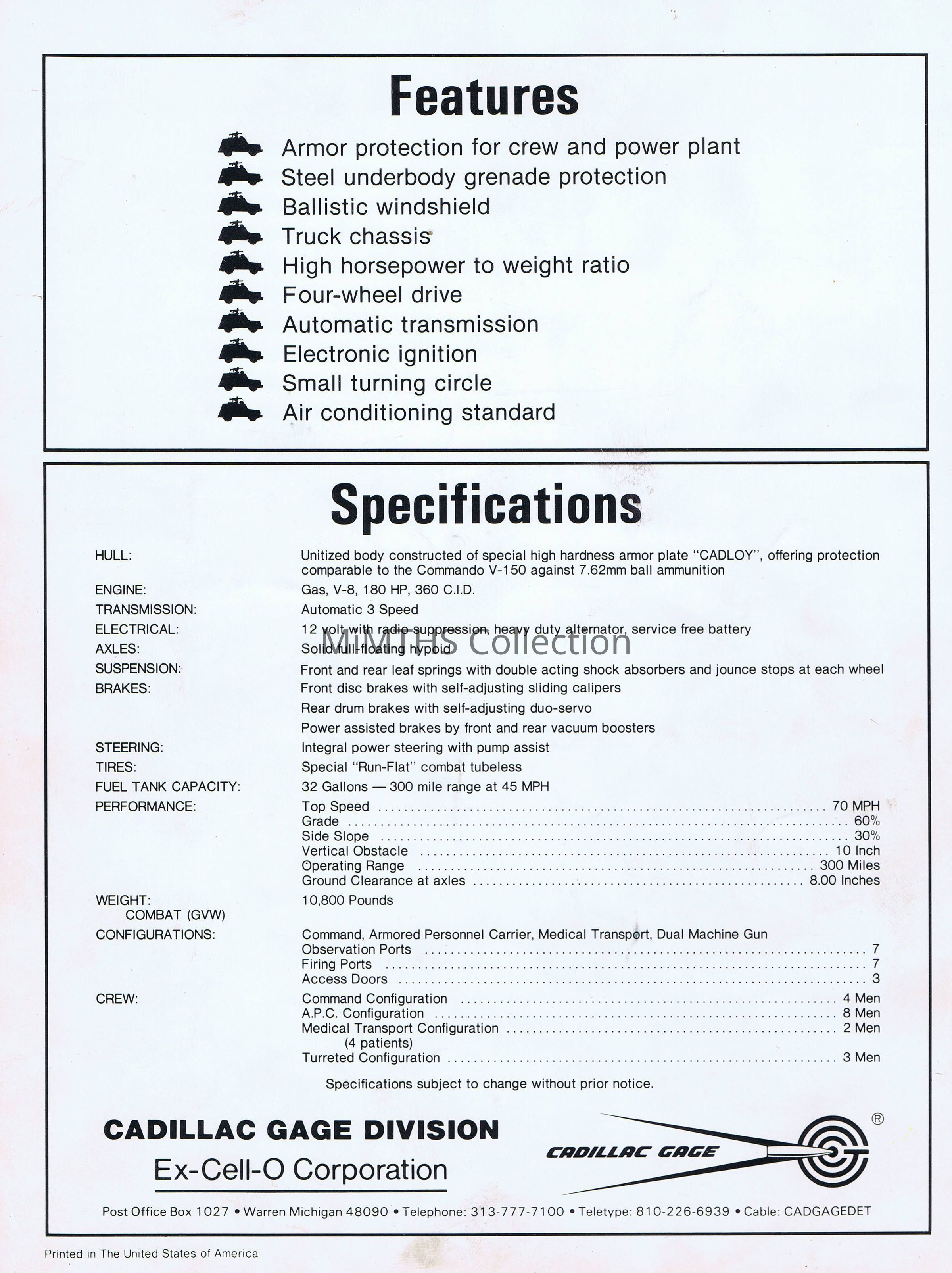 1980 Commando Ranger informational brochure, Cadillac Gage Division, Ex-Cell-O CorporationCataloged By